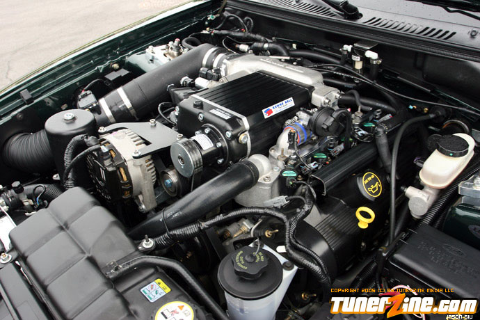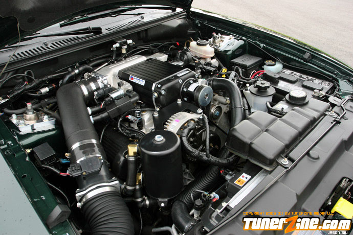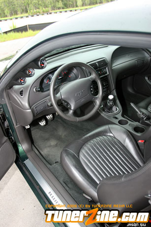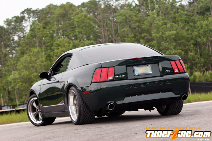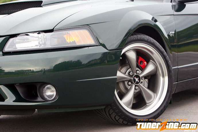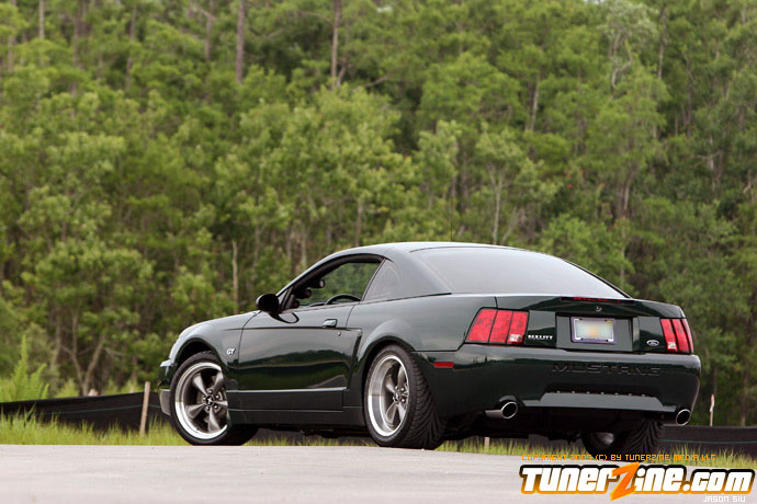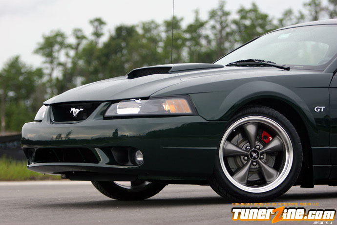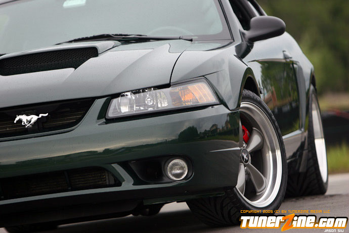 Unfortunately, driving the 390 WHP naturally aspirated 93 GT made the Bullitt a little uneventful. The 93 GT was more drag race oriented with softer springs and shocks, along with 4.10 gears, so it was a different animal, even on the street. After a few events, he began enjoying road racing immensely.so much so, he decided two Mustangs were too much, so he let the 93 GT go. Doing so meant he’d lose the faster of the two cars, so more power was a must on the Bullitt. Using the funds from the sale of the GT, he purchased the new Kenne Bell 1.7L intercooler supercharger kit. To help support the power, he stepped up to Moser 31 spline axles and Ford Racing differential, 3.31 gears, RPS aluminum flywheel, Centerforce Dual Friction clutch, 03 Cobra radiator, 03 Cobra dual fuel pumps and fuel tank, and a Ford Racing aluminum driveshaft. The car now replicated the power of the 93 GT with an estimated 400 RWHP and 410 lb/ft of torque at 9 psi. The combination has only been together long enough to break-in the clutch and work out the bugs of the new parts. He’s looking forward to getting the car on a dyno as well as to the drag strip to better prove what the car is capable of. However, the Bullitt’s forte will be hammering down the back straights of Sebring International Raceway in car chase fashion replicating what this Mustang was designed after.