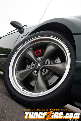 Rob Hoffman decided in 2004 to add a Bullitt Mustang to his current Ford car corral, which included a well modified 1993 Mustang GT. The Bullitt was to be for more daily transportation as well as some open track road race events. He found a mint condition, 3500-mile car after a couple months of searching. Right off the bat, he knew the car needed some performance tweaking. First he installed 3.73 gears, SLP long tube headers with matching x-pipe, cold-air intake, Predator programmer, underdrive crank pulley, rear control arms, bump steer kit, camber/caster plates, bigger rear sway bar, 1995 Cobra R springs, and 18×9, 18×10 Wheel Replica Bullitt wheels. The car responded well with the new parts. Quarter mile performance improved from 13.9@100.1 stock to 13.4@102.9. On the road course, overall feel and handling were greatly improved with the minimal suspension modifications.
