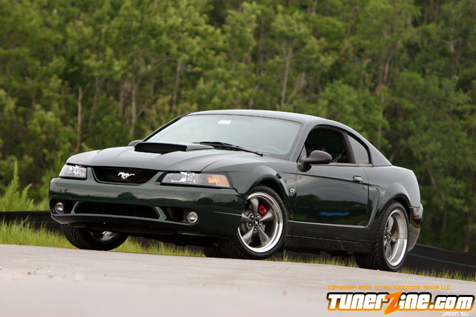 Before 2001, Ford only offered the Mustang Cobra model above the GT, which sold for 20-30% higher premium. Ford realized there was a demand for a Mustang that bridged the gap of the GT and Cobra models in both performance and price, so in 2001, the Mustang Bullitt was born. The name Bullitt comes from the 1968 movie Bullitt starring Steve McQueen. The movie features a car chase scene involving a 1968 Mustang fastback that is still considered impressive for today’s standards. This famous car chase gave Ford the idea of the first “special edition” Mustang. Ford introduced the Bullitt in three colors, the most popular being Dark Highland Green, a near match to the 1968 Mustang from the movie Bullitt. In addition to the unique color, Ford went even further for the unique look by leaving the trunk lid wingless, removing the front fog lights, adding unique rocker panels and C-scoops, 60’s style text format of the gauge cluster, 60’s style stitching on the seats, and aluminum interior accents. To round off the package, they installed a high flow aluminum intake manifold, twin bore throttle body from the Cobra, higher flow mufflers, underdrive alternator and water pump pulleys, subframe connectors, lowering springs with a higher rate, unique sway bars, Tokico shocks, and the Cobra braking system with unique powder coated calipers. Although the changes were subtle, they gave the Bullitt a unique look and performance edge over the GT model. By the end of 2001, Ford had built 5582 Bullitts. Even though the model was popular, they did not continue the Bullitt after 2001. In 2003 Ford released the Mach 1 mustang, which followed the same idea as the Bullitt, just a slightly different combination.