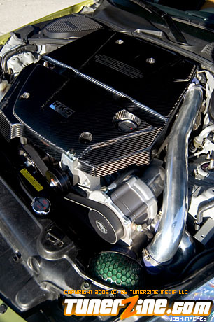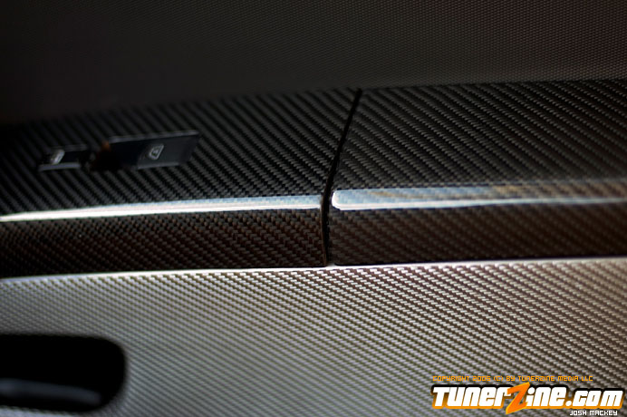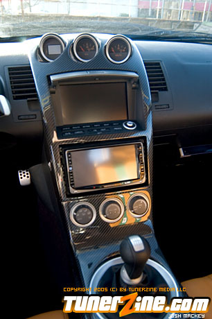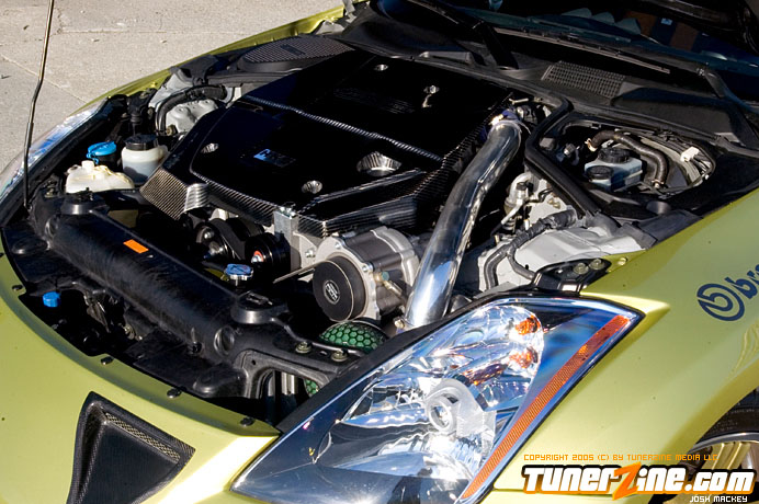 On the exterior, their own body kit naturally adorns and decorates the aesthetics of the body. From the front bumper to the wider front fenders and the carbon fiber spoiler, this 350Z carries every Do Luck styling part available. The front bumper carries the normal characters of any Do Luck front bumper, while the side skirts help match the widened stance with the front fenders. The rear bumper sits comfortably on the rest of the bodylines with the carbon fiber spoiler accenting the rear. Lift up the Do Luck carbon fiber hood and explore the possibilities of the VQ.