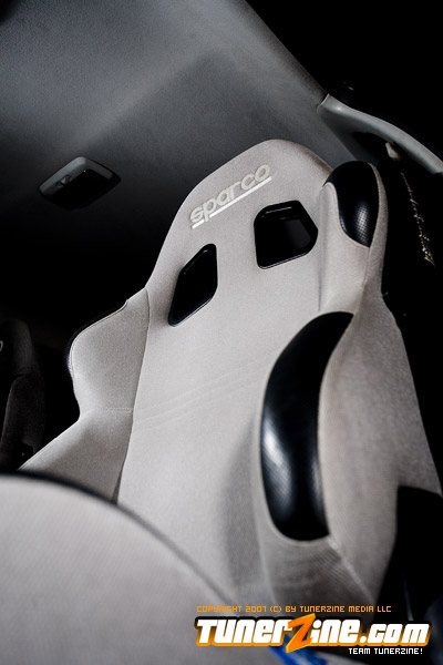 On the inside a pair of Sparco Torinos along with a Sparco Flash 3 steering wheel can be spotted. A Razo shift knob along with a series of Autometer gauges finish off the package. In car electronics are plentiful starting with a Pioneer head unit, Rock Forsgate components and JL amplifiers and subwoofers.