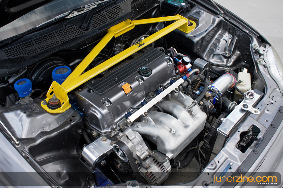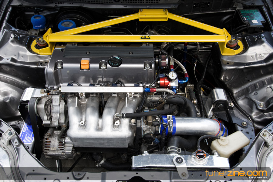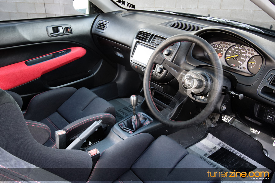 In the engine department, Duy was previously running a B18CR with individual throttle bodies but, not content, he has now moved into the the K-series family of engines. Currently the car has a K20a2 from a DC5R Integra Type R and it’s proving to be everything Duy had hoped it would be. With a cold air intake, Rcrew exhaust manifold and Rcrew 3 inch cat-back exhaust, he has made sure the engine can breathe as freely as it likes. The K-series has responded to the mods like an asthma sufferer does to Ventolin. With just the Rcrew bolt-ons and an untuned Hondata K-pro ecu it’s already making 190whp. Duy also assures me that he is far from finished and that the engine will soon be undergoing a thorough build. Even as it stands, the standard fuel delivery system wasn’t adequate for the new engine so it’s been swapped out for a Walbro fuel pump and Rcrew fuel rail. Toda Fightex FS Coilovers also play their part in getting the increased power to the ground through the twisty stuff. Needless to say, the car is already well prepped for some extra power.