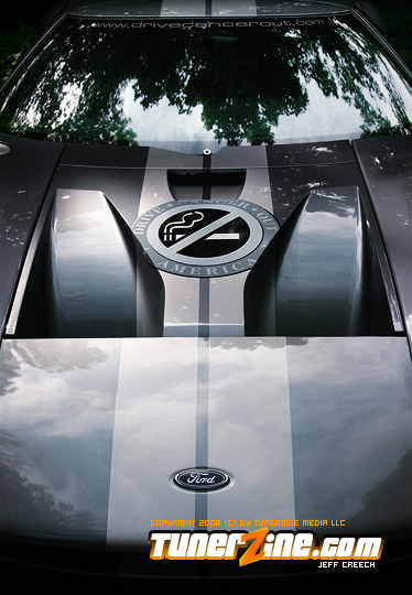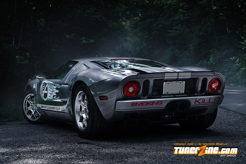 How many people can honestly say that they own a car whose purpose is to save lives? When “Drive Cancer Out” began its mission, they were faced with the decision of choosing a car that would be the benchmark of their Anti-smoking campaign. “Drive Cancer Out” is a not-for-profit organization centered on educating children about the consequences of smoking. It is quite ironic though, that this 2007 Ford GT smokes on a regular basis. No, not Marlboro Lights, this GT’s preferred brand is much more expensive. The “Drive Cancer Out” GT smokes none other than 315 Eagle F1’s. How about that for a bad habit?