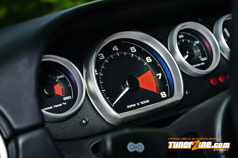 Looking in the cockpit, you would think you were in an Apache attack helicopter. Various toggle switches line the dash, diverting your attention from the massive string of gauges glowing directly ahead. In Le Mans fashion, a set of carbon fiber buckets were implemented to keep the passengers from sliding all over the cabin.