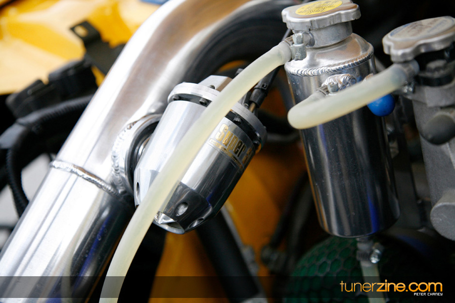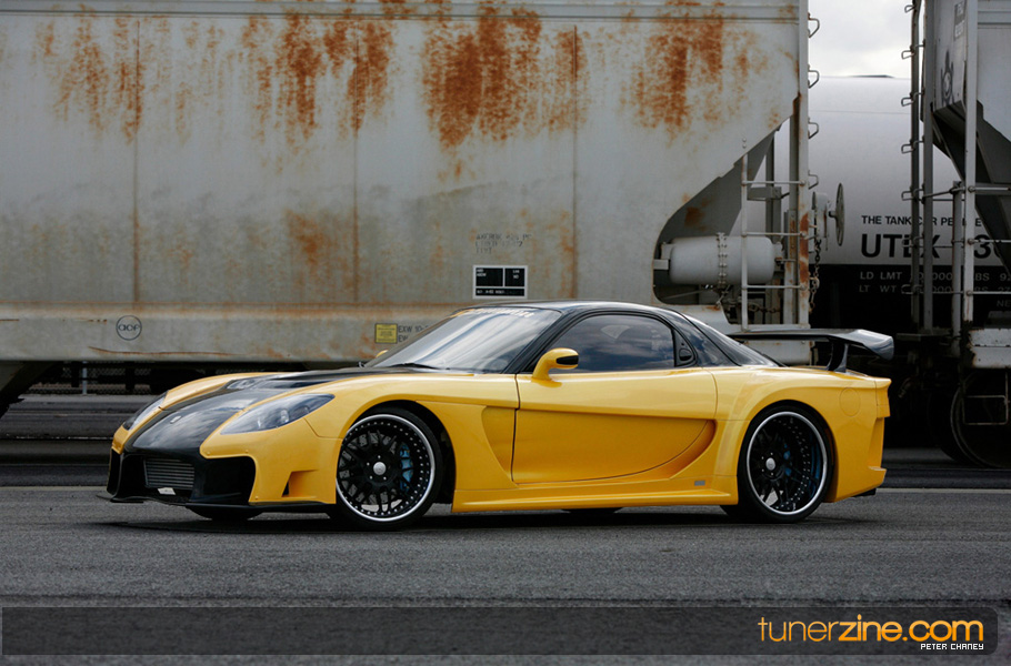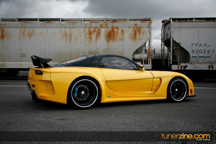 Backing up the splendid good lucks is a completely rebuilt rotary engine. All new 2mm seals, rotor housings and balanced rotors from Racing Beat transform the stock 13B into a monster, reflective of its exterior. HKS comes in with a T04E single turbo upgrade coupled with a GReddy front mount intercooler. Standard turbo components include an HKS Super Sequential blow off valve and air filter. Additional cooling has been thrown into the mix with a Koyo aluminum radiator and Earl’s 32-row oil cooler. The transmission has received an overhaul as well with a KAAZ 2-way limited slip differential, B&M short shifter and SPEC stage 3 clutch. Additional fuel is tuned with a PowerFC with 660cc primary injectors and 1200cc secondary injectors. Denso comes into play with their fuel p ump while SX regulates the fuel pressure. Coming out the rear is a HKS carbon fiber titanium exhaust.