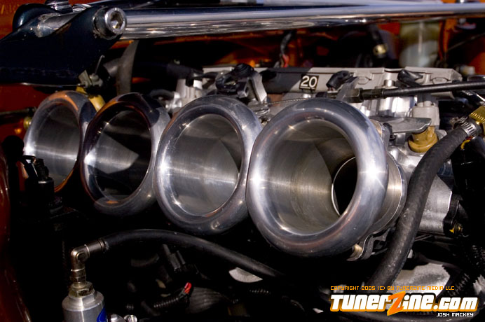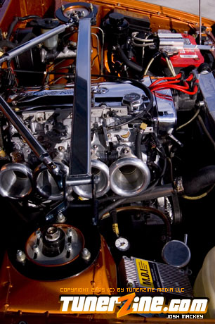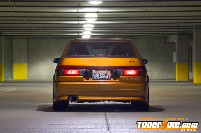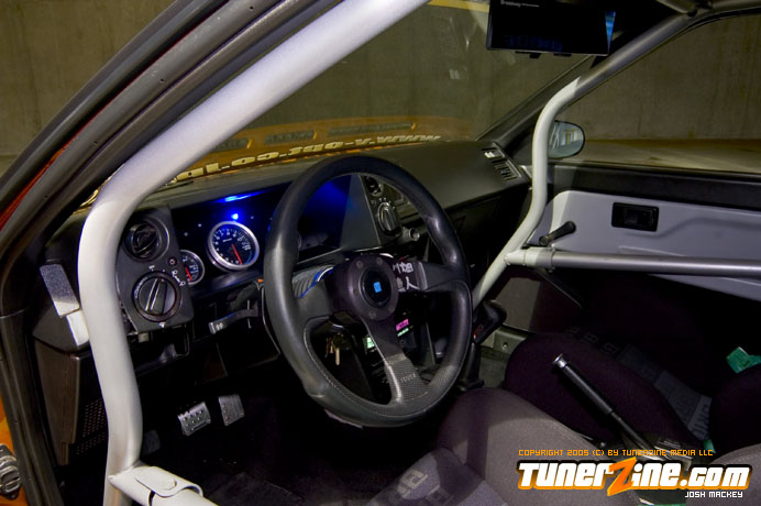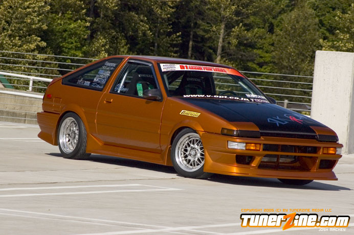 On the exterior plenty of classic AE86 pieces enhance the craze this car builds. Kouki front and rear bumpers along with 15×7 SSR Dori Dori wheels make this car as classic and traditional as it gets. The fresh orange paint job just tops everything off and makes it a perfect fit to our tunerZine shade.