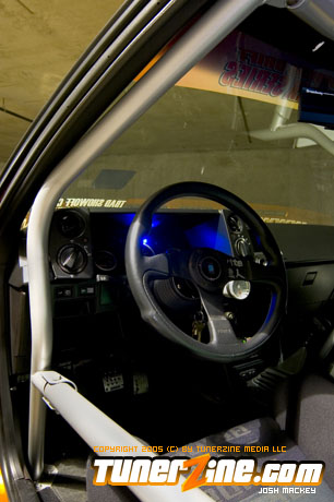 The chassis itself has been buttoned up with a 6-point roll cage from Cusco and an Intec 4-point rear C-Pillar bar. All of those suspension goods mean nothing without a potent power plant underneath the hood however. An AE111 20-valve engine with factory individual throttle bodies greets the eye when the hood is popped. With plenty of go-fast goods including Toda 264 cams, TRD exhaust manifold and Revolver full titanium exhaust, this AE86 packs a huge punch along with its suspension brethren.