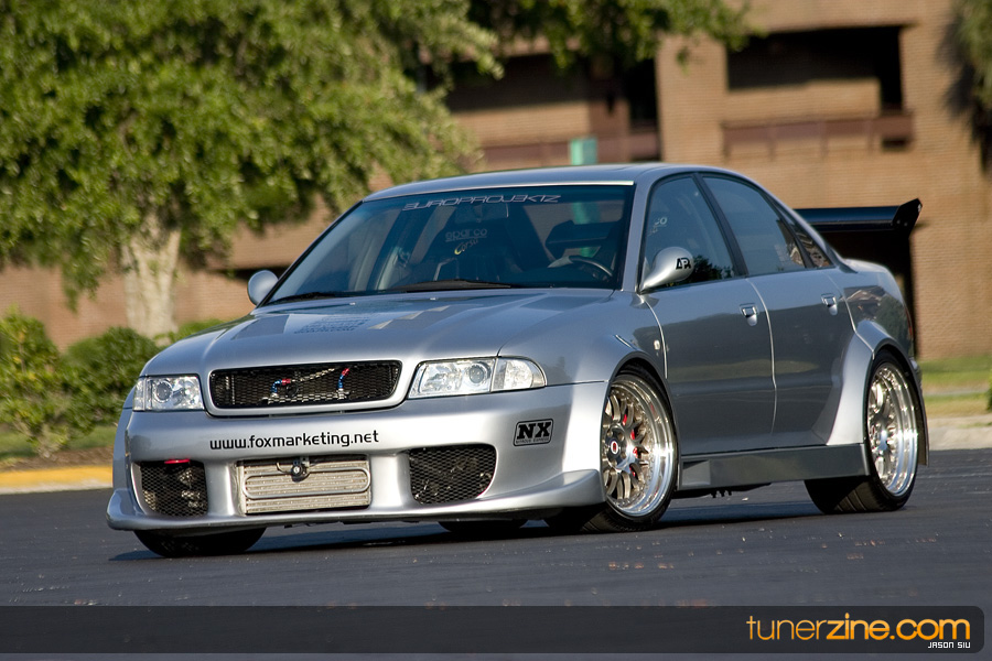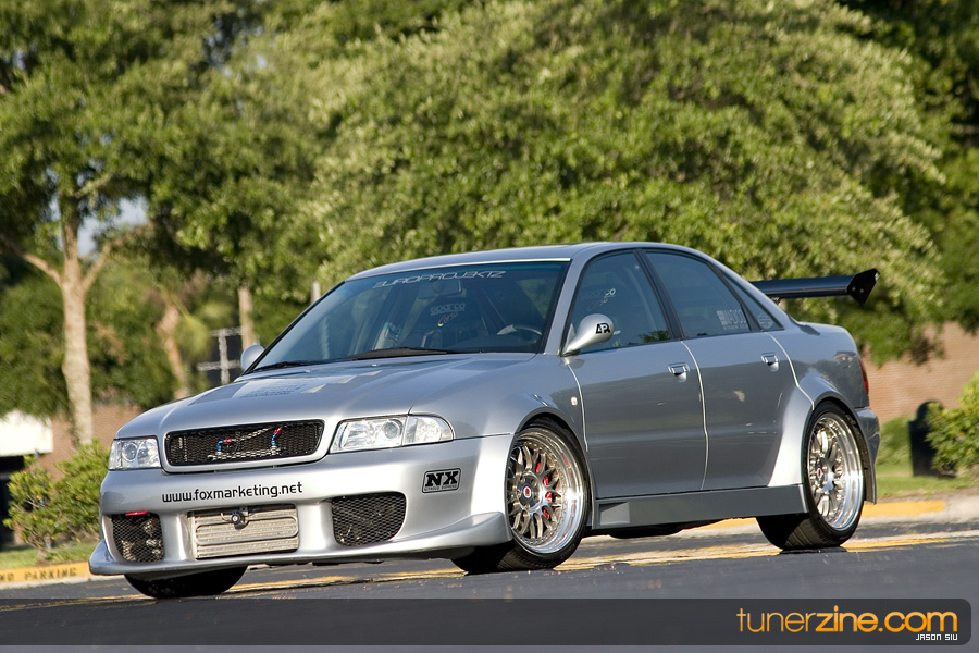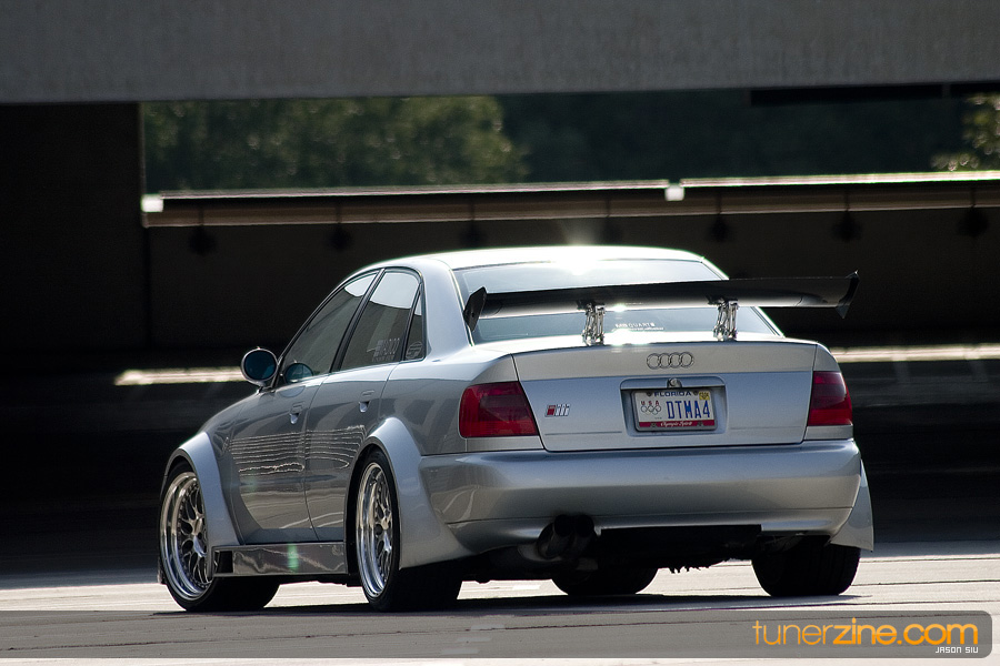 Scouting around HIN in Orlando, we were out on the prowl for the newest and hottest cars to feature. What quickly caught our eyes in the normal mixture of colorfully painted Hondas and Acuras, was this crazy wide body Audi A4. We immediately knew that this car was going to be featured before anyone else could get their hands on it. This is definitely one bad ass four door Euro.