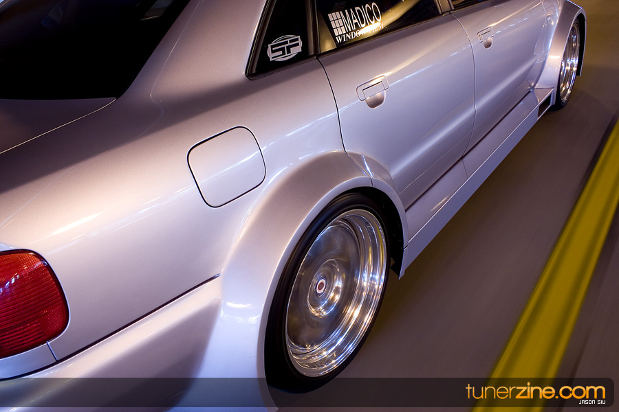Several years ago, I was asked to shoot a widebody A4 for Modified Magazine. This was back in 2004. Before that however, I had written an article about this widebody A4 for another online website. Amazingly enough, a quick search on Google pulled up another website that had taken that content and reposted it on theirs. This was back all the way in 2002. Several years has past since then, but Donny Mak’s Audi A4 has still been searched for on the ‘net and is still one of the nicest A4s ever built. Doing the custom sheetmetal widebody himself, this A4 had styles that some are barely touching on today in building their cars. To celebrate this blast from the past, we’re going to go ahead and copy/paste the article I previously wrote all the way back in 2002.