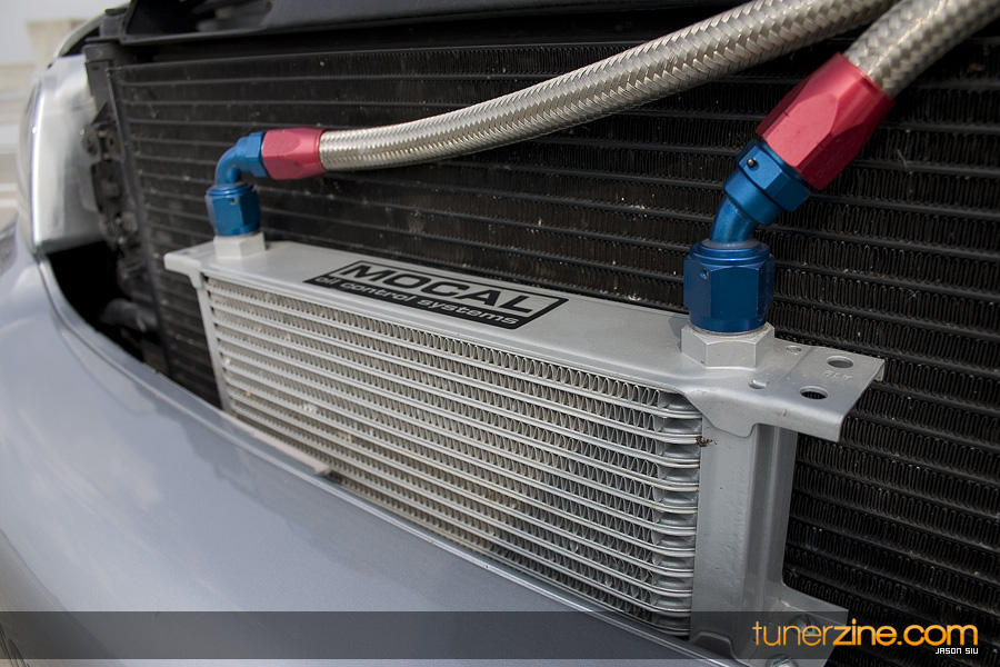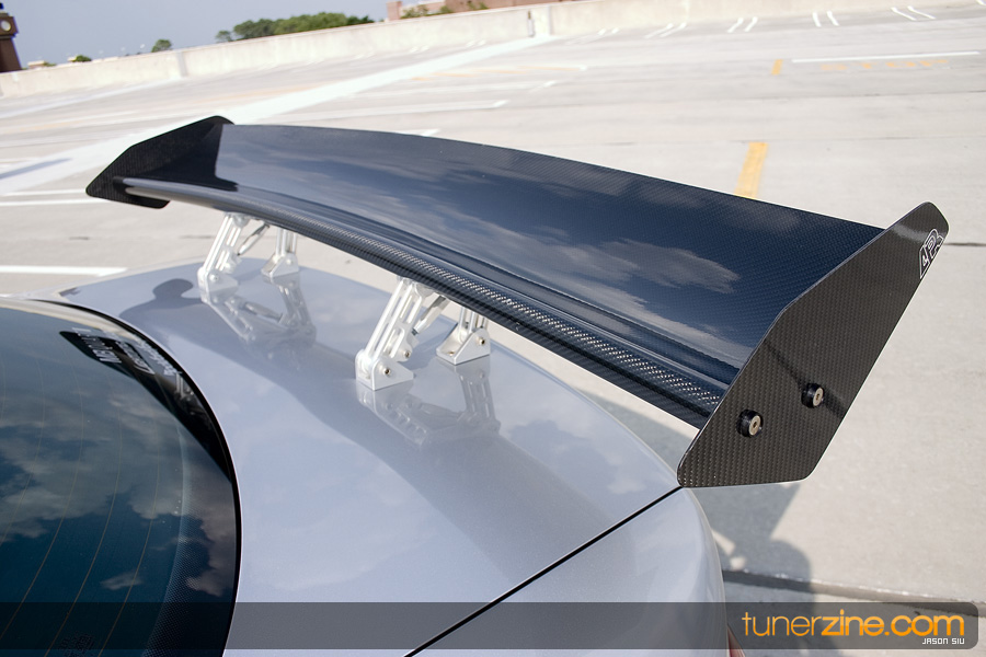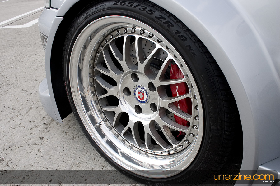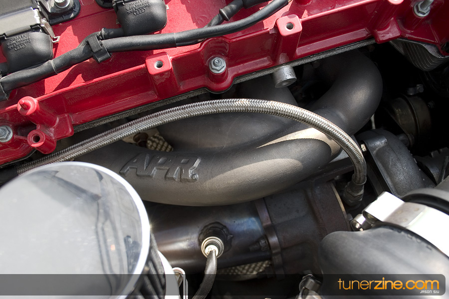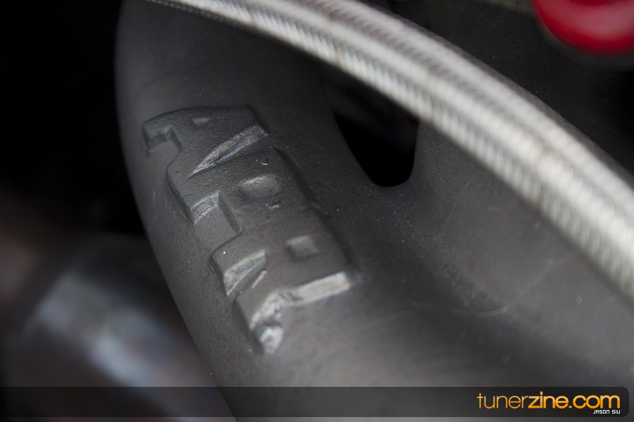 Take another breath, and trancely stare at the wheels and suspension. Nothing but wide can be found on these HRE 540’s which are in the 18×10 style wrapped with Pirelli P-Zero Rosso 265/35/18 tires. You hardly have time to breathe again before you notice that the behind the HRE’s are Movit Porsche 911 Turbo brakes with Neuspeed brake lines to back them up. H&R coilovers gives the car the menacing stance that it needs while Neuspeed rear 19mm swaybars stabilize the suspension during those hard drives out. Last but not least, APR front snub mount rounds off all the wheels and suspension mods.