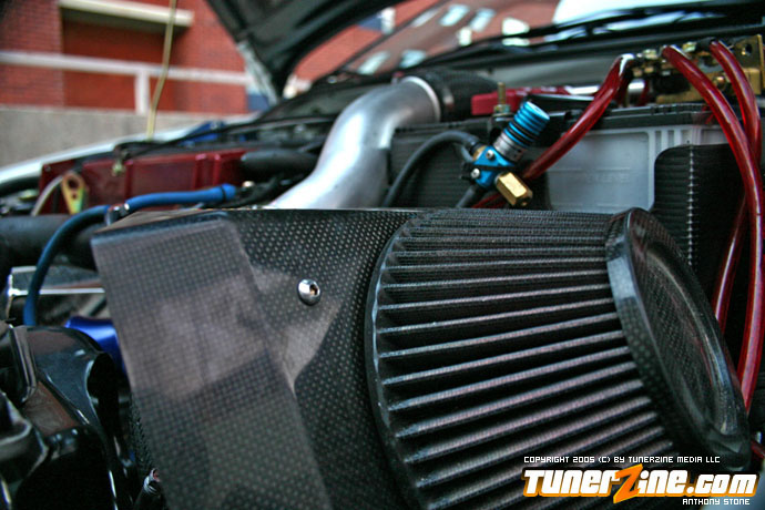 Bumping up the stock horsepower starts with the K&N intake system but hardly ends there. On the exhaust side is a 3″ Megan Racing downpipe to a 3″ Perrin testpipe and out a 3″ Megan Racing cat-back exhaust system. Plenty of high rpm horsepower comes from a set of HKS cams; 264 on the intake side and 272 on the exhaust side. Additional fuel is now fed into the system from a Walbro 255lph fuel pump which is a necessity once the boost is turned up through the TurboXS boost controller and UTEC ECU. Adjusting the new HKS cams comes from the limited edition AEM 5-bolt cam gears.
