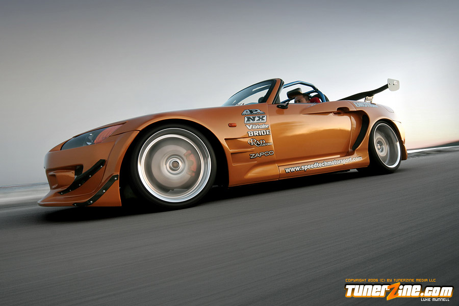 When Honda first announced the S2000 to the world, rear wheel drive enthusiasts were overjoyed to say the least. Ecstatic is almost an understatement in describing the outbursts coming from the Honda camp. In fact, Honda probably converted many new fans to their manufacturer just by releasing the S2000. Rear wheel drive powered in a roadster chassis along with 240hp to boot in a high revv’ing 2.0L, it was almost hard to find any flaws with the car. Combine that with its naturally balanced handling characteristics and it was extremely difficult to find flaws with this car. While most recently several drift teams across the nation have been making S2000s their weapon of choice, show themed S2000s along with heavy driven performance have been coming out of the woodwork, perhaps heavily influenced by the technology spawned by manufacturers developing parts for drift S2000s.