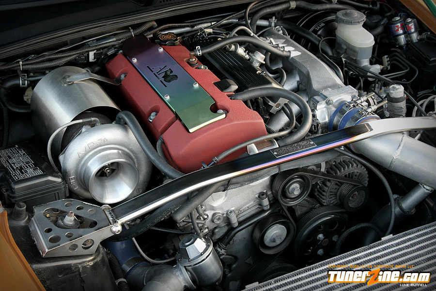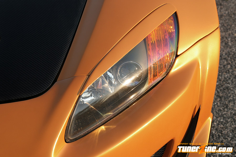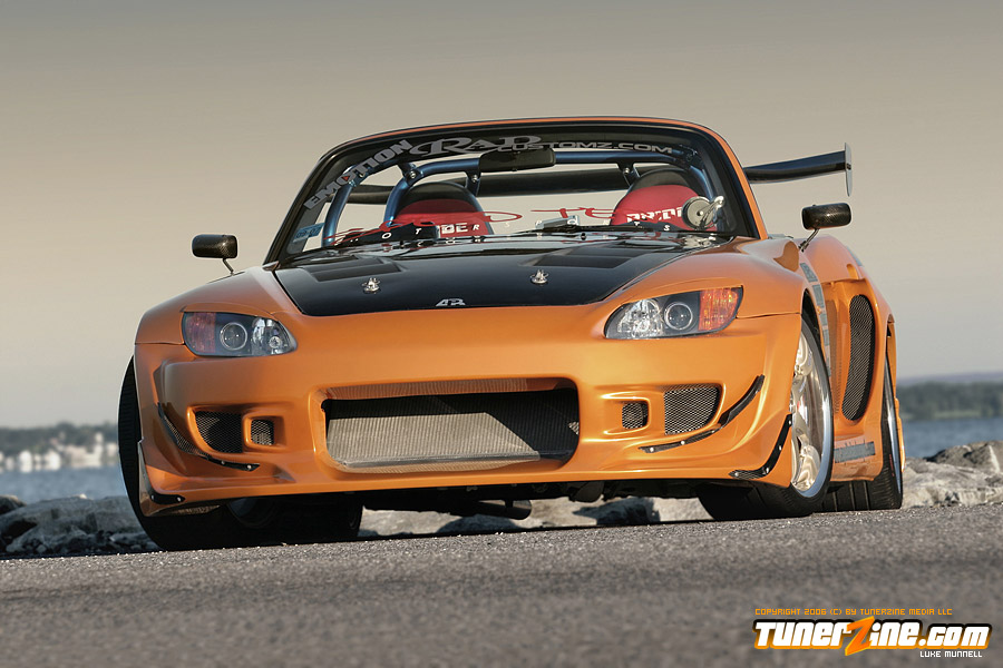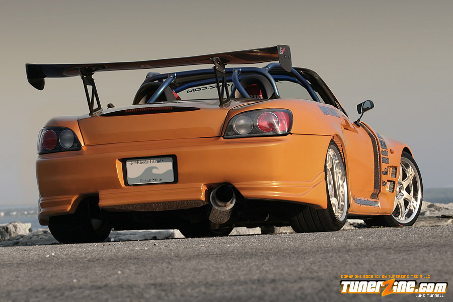 Tony Phouaykoumpha of Woonsocket, RI first got his 2001 Honda S2000 as a replacement project car. Owning a shop at the ripe age of 23, Tony knew that this S2000 had to do more than just be fun to drive. It was going to become a marketing tool for not only his company but his associate sponsors as well. Representing Team Emotion, Tony also knew there was a standard that had to be achieved with this project – and boy did he surpass those expectations! Starting with a custom wide body throughout the whole chassis, Tony designed on his own a widened 3-inch front half while the rear was widened 6-inches. The doors were even modified to flow with the rest of the car, along with the C-West front and rear bumpers. APR threw in a helping hand with a bulk of their carbon fiber goods including hood, spoiler and mirrors. With all the body work accomplished, Tony had the entire chassis painted a traditional Honda color – Imola Orange Pearl.