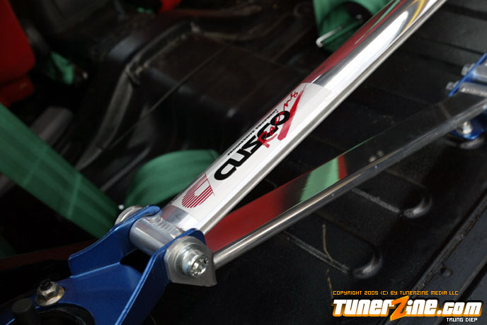 Finishing touch? Not quite. A custom-ordered set of Volk Racing diamond cut GT-P’s can be seen contrasting the entire outside of the car. Running a staggered 18×8 and 18×9 setup, the GT-P’s flush out each fender nicely. Helping switch from a four-lug to a five-lug setup, Greg purchased GTO conversion hubs for the front and ran Z32 non-turbo hubs in the rear. Brembo cross drilled and slotted rotors peek from behind each diamond cut wheel. A series of suspension mods ensures this S13 can handle in anyway Greg wishes, be it drift or not. Lowering the car to its desired height and offering dampening control is a set of TEIN SS coilovers along with TEIN front upper pillow mounts and TEIN tie rods. A pair of Cusco strut bars bolts everything down in the front and the rear.