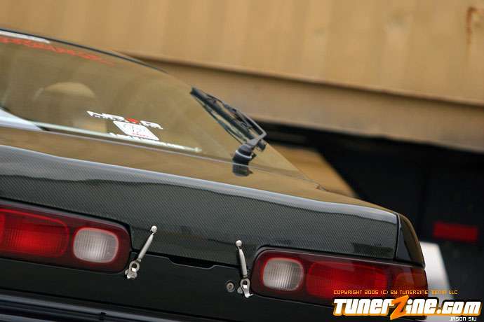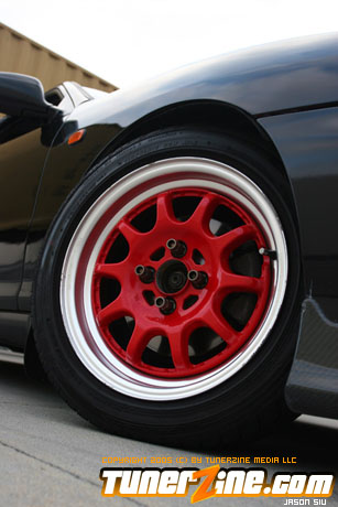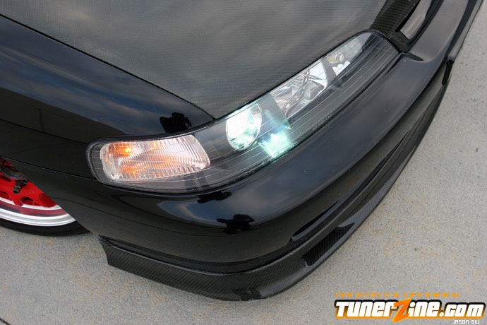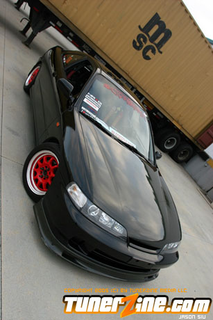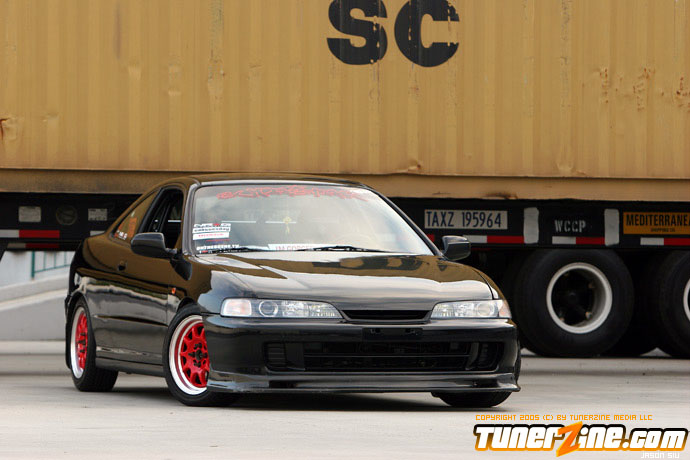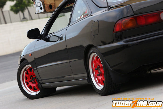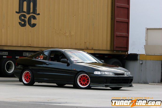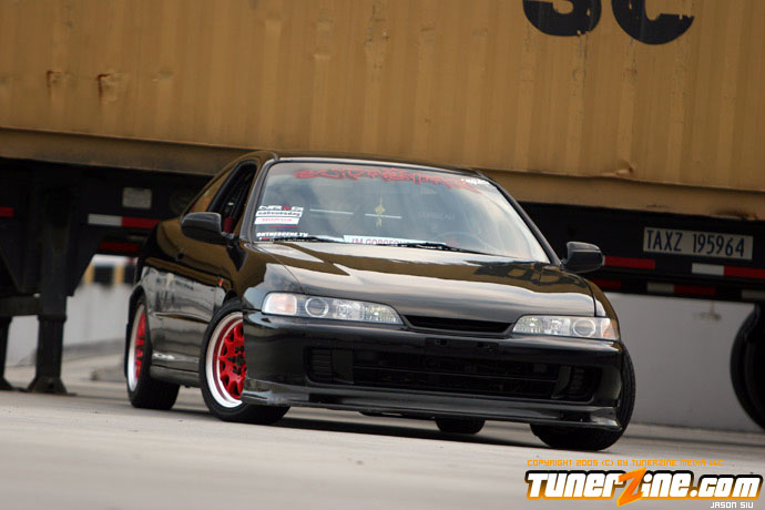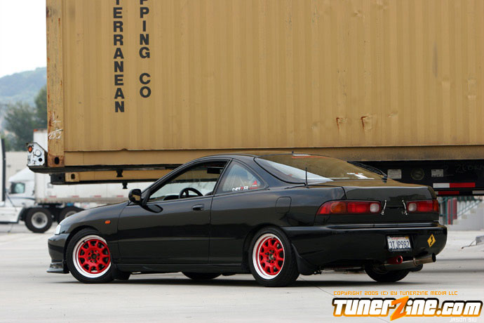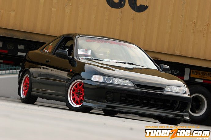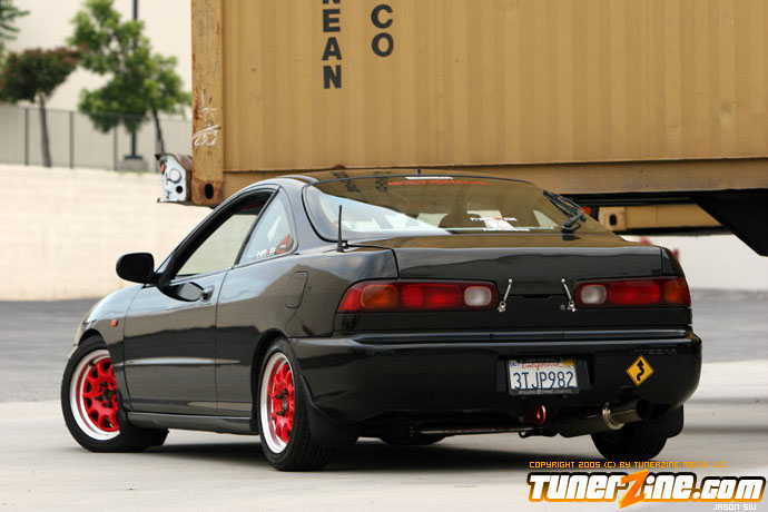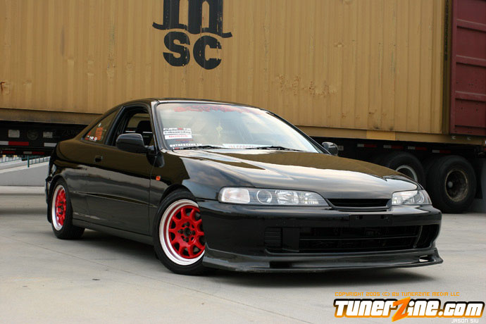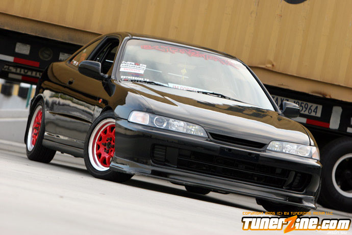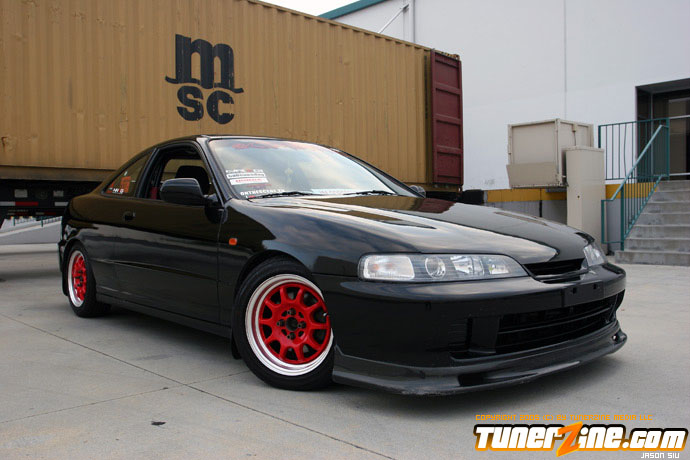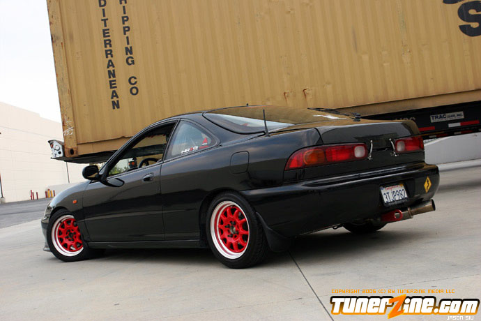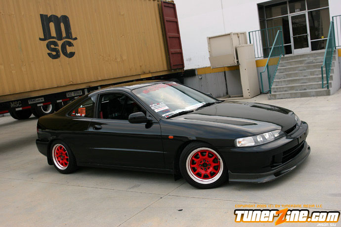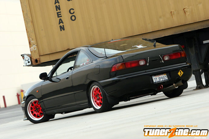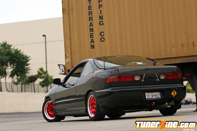 The exterior of the Integra started off with a revamp of the front end. The JDM front end conversion fits nicely while a VIS carbon fiber hood, trunk and lip adds to the menacing stance. With the red wheels contrasting against the dark black shade of the paint, this car easily means business from the outside. Anthony keeps a majority of his engine modifications on the hush, but what we do know is the typical stuff. An AEM cold air intake to a custom APEXi N1 copy exhaust fits the bill for the in and out. A Mugen chipped ECU along with an Exedy Stage 1 clutch helps get all the power to the ground.