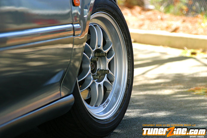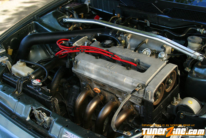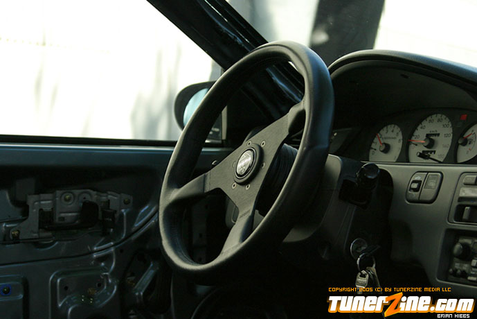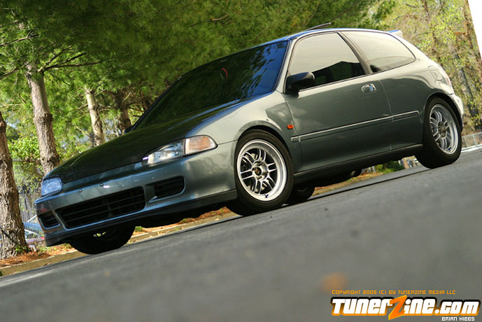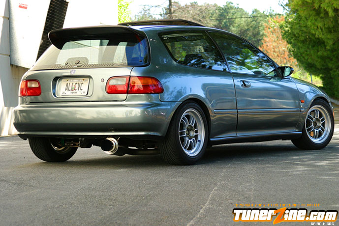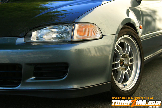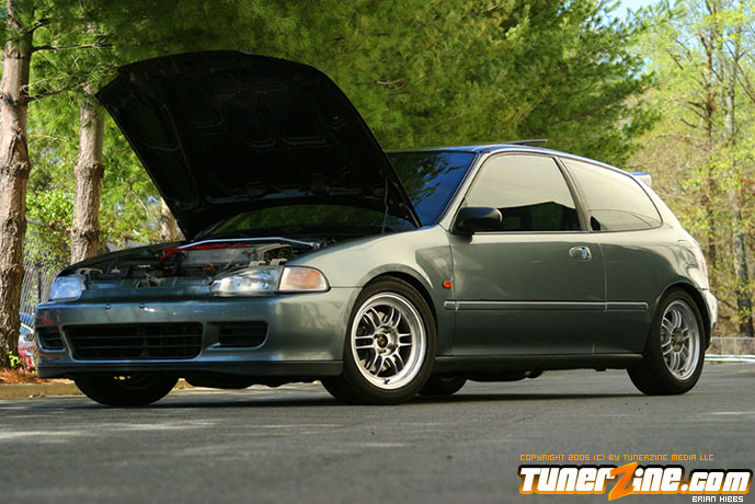 The outside of the car was stripped and repainted a custom shade of paint as seen in the photos. Several exterior goodies from Japan, along with a Bodykits NW hood and duckbill finish off the rest of the exterior modifications. Finally, the EG sits pretty on 15×7 Enkei RPF1 wheels doused in a silver finish on all four corners.