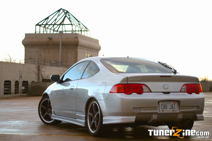 Hailing from Ottawa Canada, this silver RSX owned by Vincent Chu is a simple way of showing what the RSX is all about. On the outside, Vincent changed the subtle styling of the RSX with a genuine C-West full body kit. From the front bumper to the rear, the RSX takes on a new, more aggressive look that almost seems fitting for factory. Dropped on H&R springs, the lowered stance of the RSX is balanced off with 18″ Rays G-Games Wolf 77 series wheels on all four corners. Complementing the silvery shade of the RSX’s exterior, the dark gunmetallic G-Games offset the cars in more ways than one. Wrapped in Falken GB-R rubber, this RSX gets grip when needed.