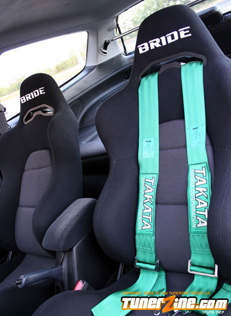 On the interior, plenty more JDM goods found their way home. Bride Ergo seats and Takata harnesses are the highlights amidst all the JDM EG6 goods. Under the hood, a B16A swap found its way in with a completely built head by LHT Performance. Consisting of ITR cams, Skunk2 cam gears, Ferrea valvetrain and a Mugen headgasket, the B16A head is fed plenty of air with a series of boltons. A Top Fuel intake shoves air into the motor via the Skunk2 intake manifold, as it goes through a JDM ITR header, and out a Spoon N1 axle back exhaust. Several more Spoon Sports goodies take residence as well with plenty of other JDM amenities.