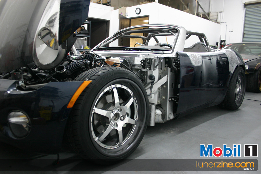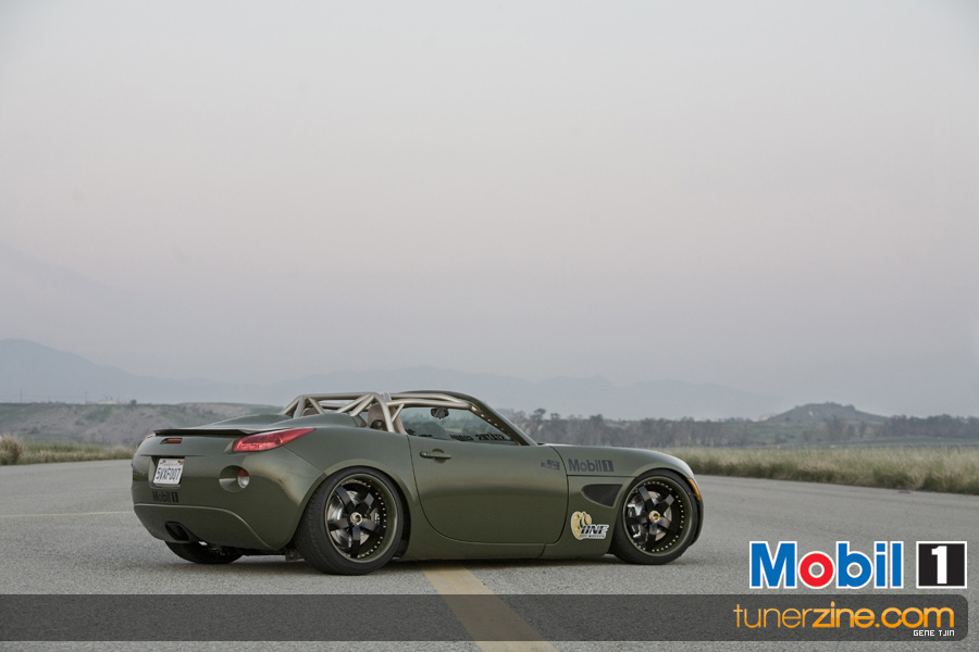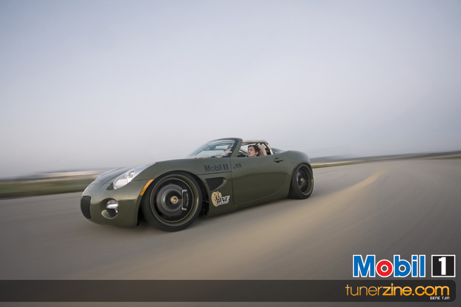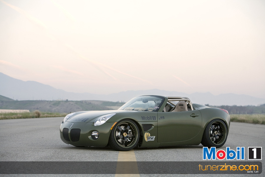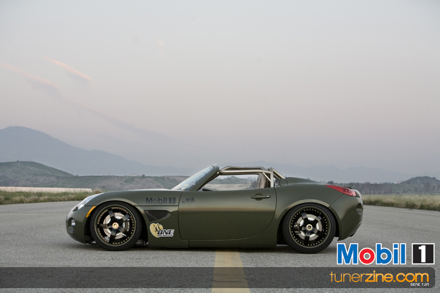 Tunerzine.com is known for showcasing a variety of makes and models and even though we have featured our fair share of Chevy Cobalt’s and other domestic rides, this is the first time that we have ever featured or put a Pontiac Solstice on our cover. This collaboration project speaks volumes in terms of teamwork, creativity, and overall design. This Mobil 1 Solstice speedster has a bit of something for everyone and the engineering behind this project is quite mind blowing. If you want to see how this Mobil 1 Solstice was built, just scroll through the photos below and check out the in-depth behind the scene photos.
