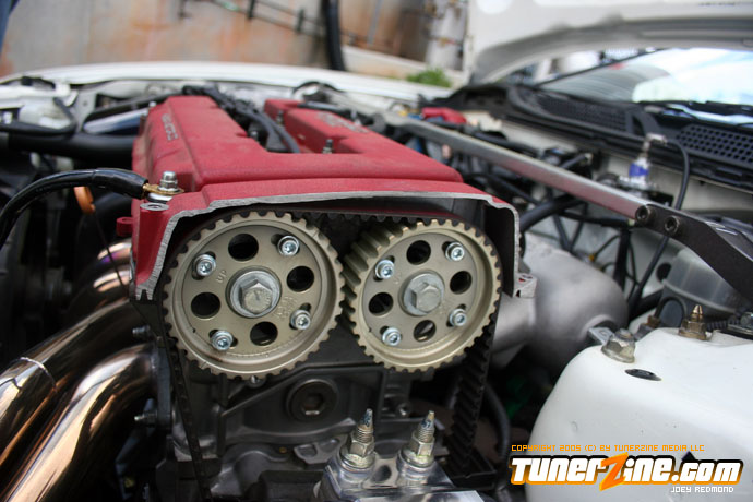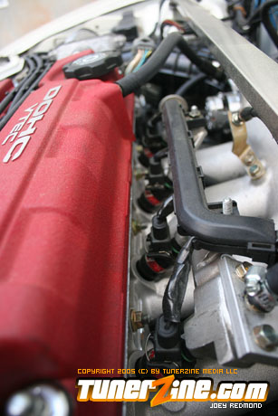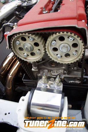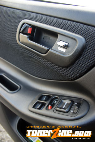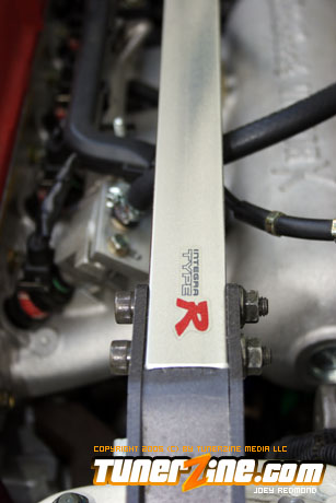 Fuel has been upped a notch with RC 370cc injectors and Toda goods keeps the tuning job by Jack at P1 Automotive a little simpler. Helping ensure all the power gets to the ground is a Clutchmaster Stage 3 clutch and a set of Driveshaft Shop Stage 3 axles. All the tuning is done with an AEM EMS on this high compression Type-R.