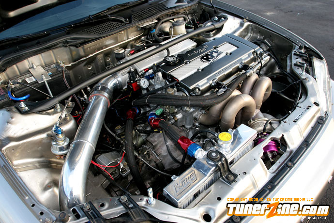 JIR: Like I said earlier we didn’t have immediate plans to race in 2004. Things just came together and a great group of people put their minds together to get the car done in time for the first NHRA race and after our blown engine at the first NDRA race of 2004 we got back to the shop and it all went crazy from there. From being in the industry for a couple of years I understand that in order to stay at the top and and not run into any issues you have to pay to do it right. We went a little crazy on the new buildup of the engine and the car with that parts and pieces that we used. My wallet was hurting for a long time but you can see by the end result it is much easier to do it right the first time than to nickel and dime a buildup and just run into issue after issue. As with any new car we ran into some set backs but one of the great things about sport compact drag racing is the willingness to help from others. A little “secret” here and a little piece of advice there helped more than you think to start getting the car down the track.