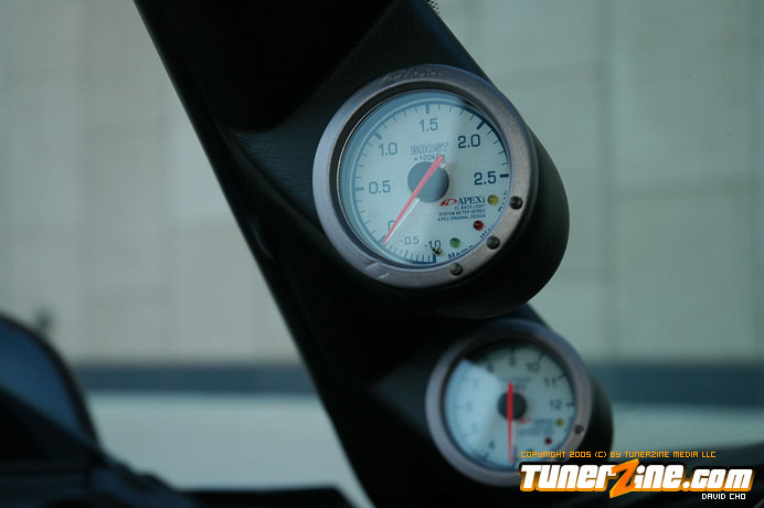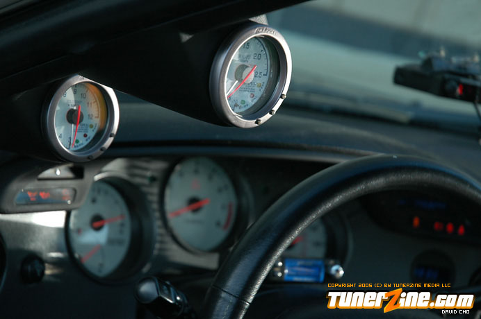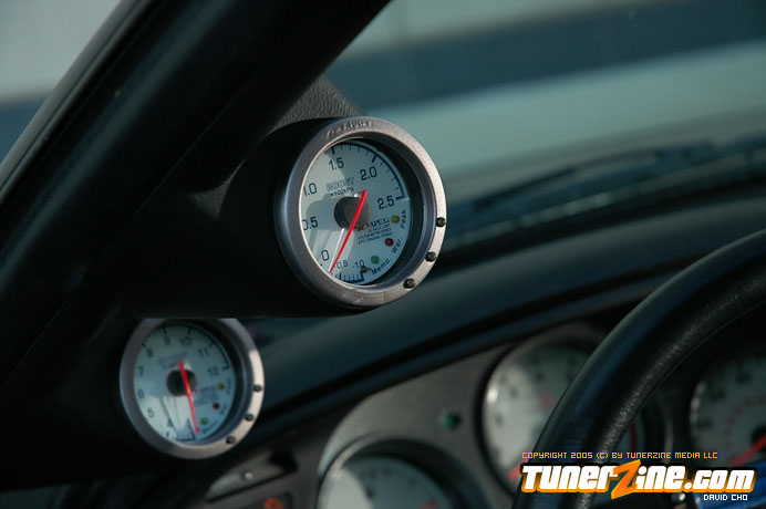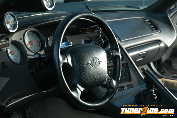 At 16psi, this Supra’s power comes easy with just a light list of bolt on performance modifications. An HKS air filter, Super Sequential blow off valve and Super Dragger exhaust system attribute for the bolt on performance. Completing the exhaust is a hard pipe kit and 4-inch downpipe. GReddy goods helping bring up the boost and keeping reliability as a main priority include a turbo timer, Profec B boost controller and boost cut controller. APEXi gauges keep the owner informed on what goes on with the 2JZ.