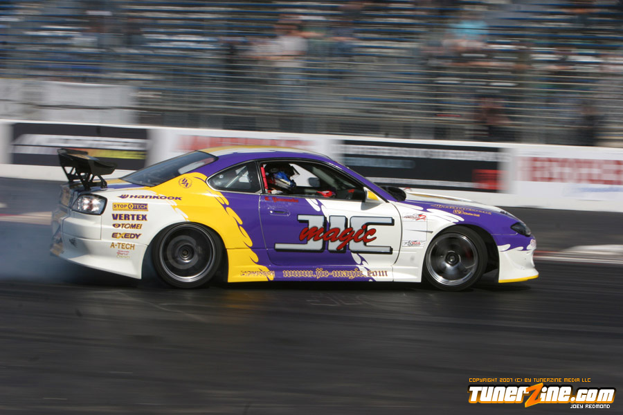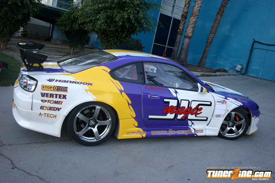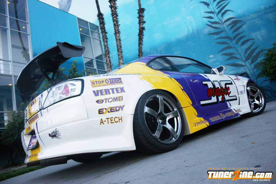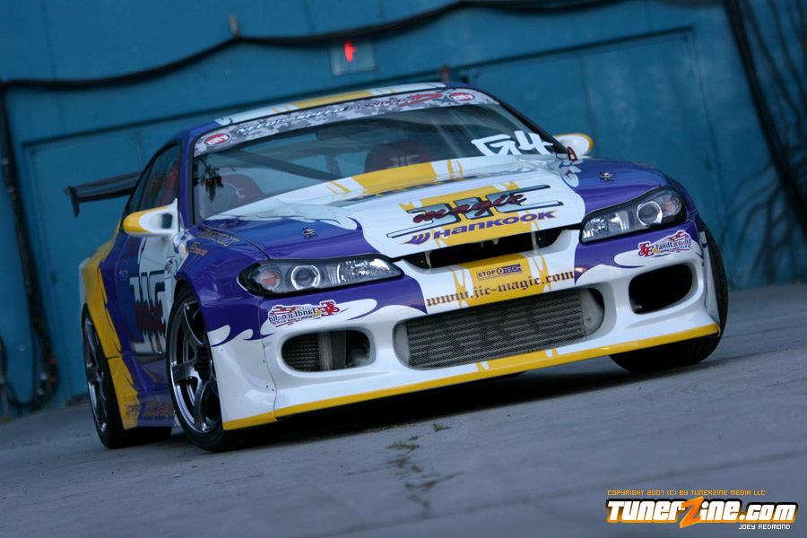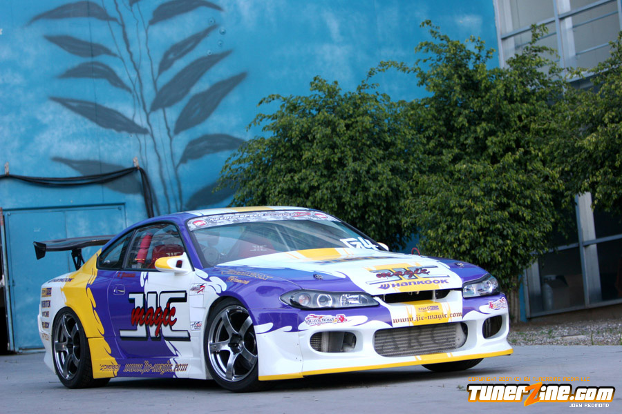 Drift cars come in all shapes and sizes. While most American contenders get their on what’s cheap and easily available to them, some Japanese aftermarket manufacturers like to stick to their roots. One thing we’ve definitely seen in the Formula D series the past couple of years is the onslaught of true American muscle battling it out against the more nimble, turbocharged cars from Japan. So what better way to fight back against the Mustangs and GTOs of America? JIC Magic decided to import over one of Japan’s finest vehicles, the S15 Silvia. Equipped with the coveted SR20DET motor straight from the factory, JIC Magic broke it down to the fundamentals and prepped the car to contend with the best of what America has to offer.
