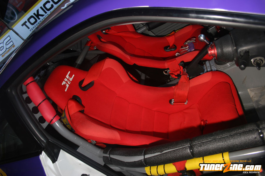 In the interior a full custom roll cage keeps the driver safe while JIC buckets give them a place to feel comfortable while doing their business. OMP harnesses keeps them nice and secure while a series of DEFi gauges keeps them informed.