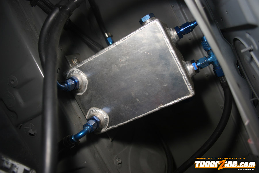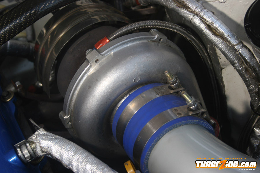 On the exterior, the S15 has received a fine treatment of aesthetic goods thank to Vertex. Their Ridge wide body kit not only made the Silvia S15 more aggressive, but allowed JIC to fit their own J-Force wheels in a 17×8.5 / 18×9.5 fashion in the front and the rears. This S15 smokes up Hankook Z212 tires on the track. Up front a BN Sports vented hood helps eliminate heat buildup in the engine bay while a prototype JIC rear wing is being tested to see its impact on the chassis.