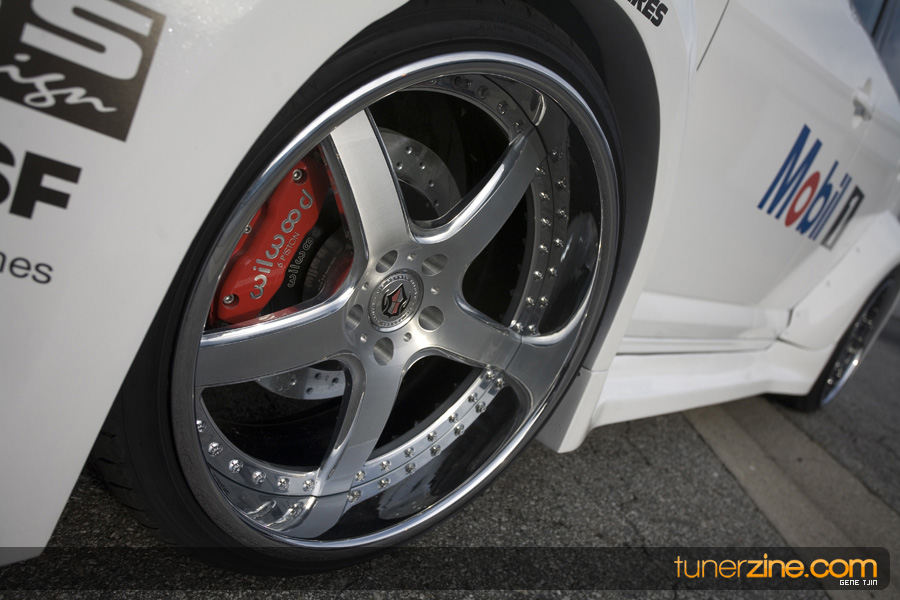 Leigh concentrated on the exterior first while brewing up what would be going on under the hood to really separate this Mobil 1xB from the crowd and emphasize Mobil 1’s dedication to pure performance. While the car was at BRS Autodesign, a new front bumper, side skirts, rear bumper, wing, vented front fenders and vented hood were designed, fitted and manufactured as the starting point for the project. Seibon then equipped the rear hatch with an OEM carbon fiber piece and off to the paint shop the project went for custom paint by SPS, using BASF goods.