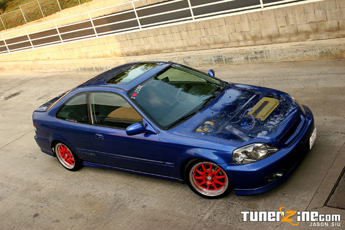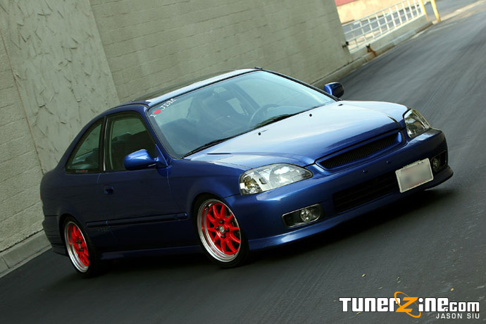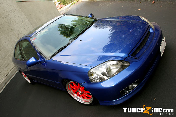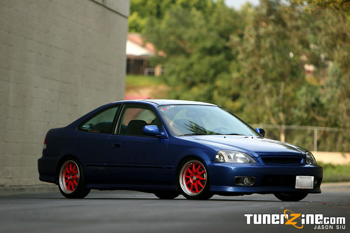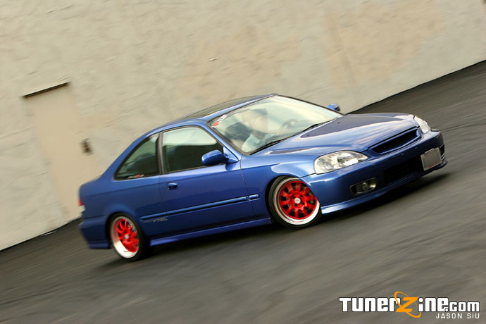 As I sit at LAX awaiting my flight to Vegas for SEMA, I look back at all the crazy stuff that had gone on the past two weeks. My mind’s a little daze as I decided to go out last night and I haven’t slept, so I figured Mouse’s Si would be a perfect article candidate to write while under the influence. Having owned a 1999 Civic Si myself, I frequented ClubSi.com often and was always a contender for the wheel whore award. Running right up next to me was another Electron Blue Pearl Si, particularly Mouse’s that thought he could hang with changing wheels. When I made my plans to fly out to Los Angeles, I knew I had to meet up with Mouse’s complete project and to get some snaps like no one has ever seen.
