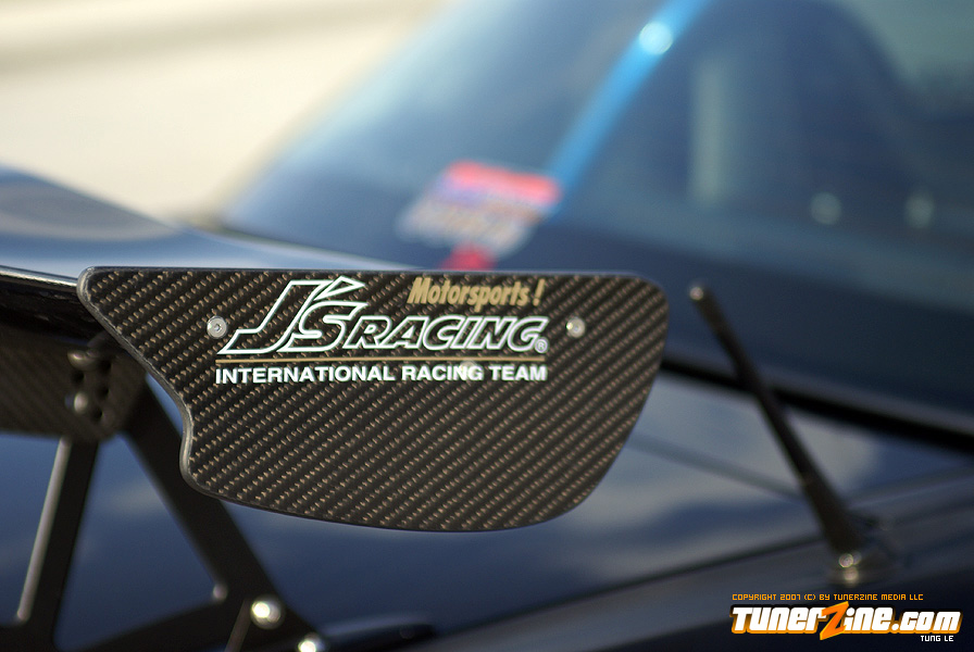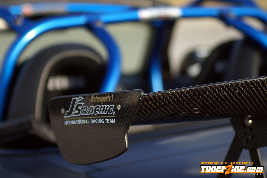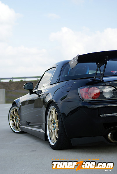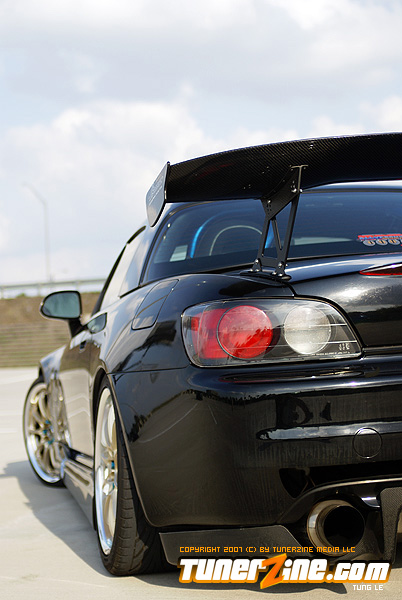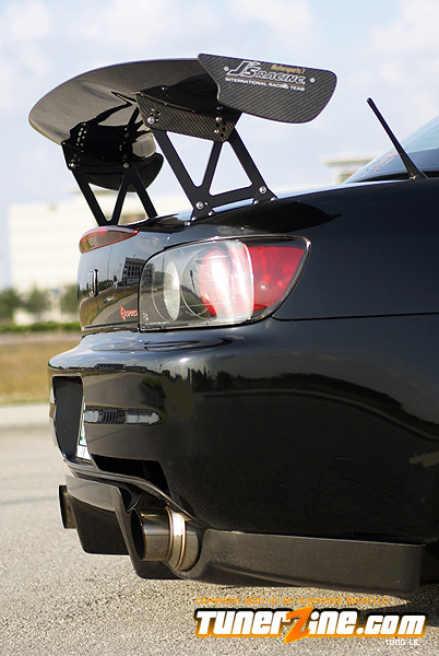 Aside from the Volk wheels, everything else on the outside of this car is black on black on. well you get the idea. The front bumper and side skirts come from GP Sports. The back of the S features a ASM Inspired rear bumper. To help with the airflow around the S2000, Roger’s installed a carbon fiber front splitter from S2X. In the rear we find more carbon fiber in a diffuser from J’s Racing. The wing on the back of the S also comes from J’s Racing and of course it’s made of carbon fiber as well.
