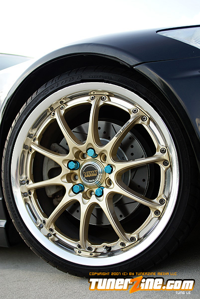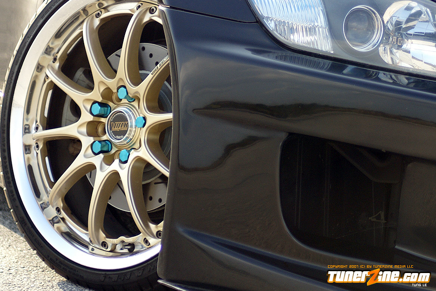 Today we’re taking a look at Roger Nakada’s black S2000. And what a beautiful S2k he’s built. Starting where the rubber meets the road we find 18″ Volk Racing GT-N wheels in a bronze color that really makes them stand out. Behind the wheels hides Cryo treated, slotted, and drilled rotors to help the S2k stop on a dime. Applying the pressure to the rotors is a set of Hawk Racing brake pads.