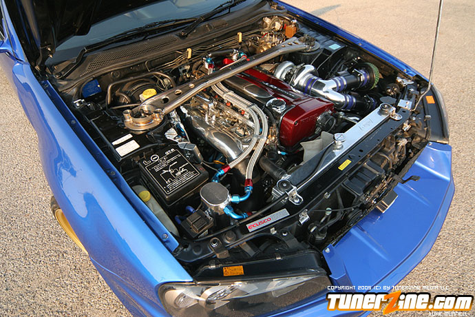 The car now sports a Do-Luck full body kit, including trick fiberglass replacement front fenders, and carbon fiber spoiler. Do luck also came to the table with a set of it’s double 6 rims, at 18 inches at each corner in order to help keep this monster grounded. Keeping with the theme of grounding this beast Tein was contacted for suspension duties, and a set of their CS coilovers was installed and sets the perfect ride height, as well as keeping things somewhat compliant when Joey decides to unleash the power under the hood.