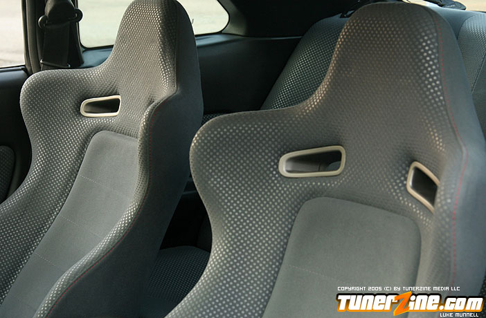 Keeping things real on the interior Joey went with a Nismo Gauge cluster in MPH Eclipse Dual din head unit with dvd player mated to a PPI amp and JL audio subwoofer to have something to listen to when he’s not listening to the symphony of engine and exhaust noise.