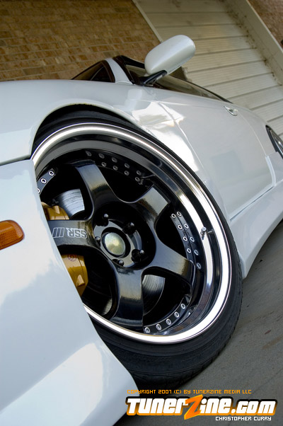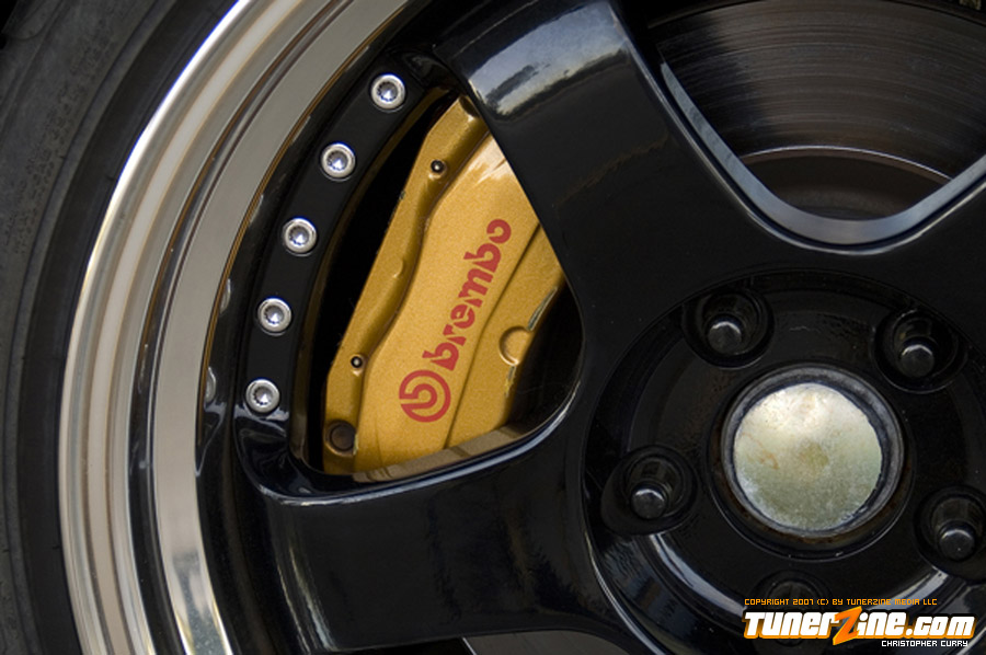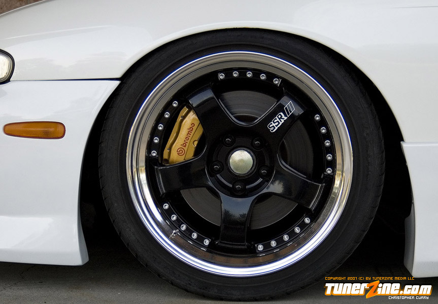 So how does Jon roll? Well on SSR professional S1 wheels of course. And where the rubber meets the road, this “Silvia” rolls on 235/40 Falkins in the front and 255/35 Falkins in the rear. And to bring the car to a stop, we’ve got a set of Brembo Track Edition brake set found on the Nissan new 350Z. And if you’re going to ride, and look good doing it you better be sitting low. Jon chose Zeal Function XS coilovers to lower his 240’s ride. To help stiffening the drive around corners, this “Silvia” is sporting Kazama rear upper arms.