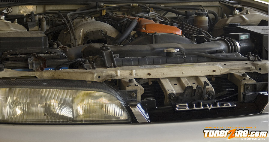 And one look at this 240 tells you there’s been quite a bit of work done to make it look different on the outside. The Nissan emblems have been replaced with Silvia emblems on the hood and front grill. It’s a nice touch that harkens to the Japanese counterpart for the American 240sx. The kit on this car is a complete Version Select kit from front, to side, to back.