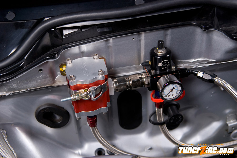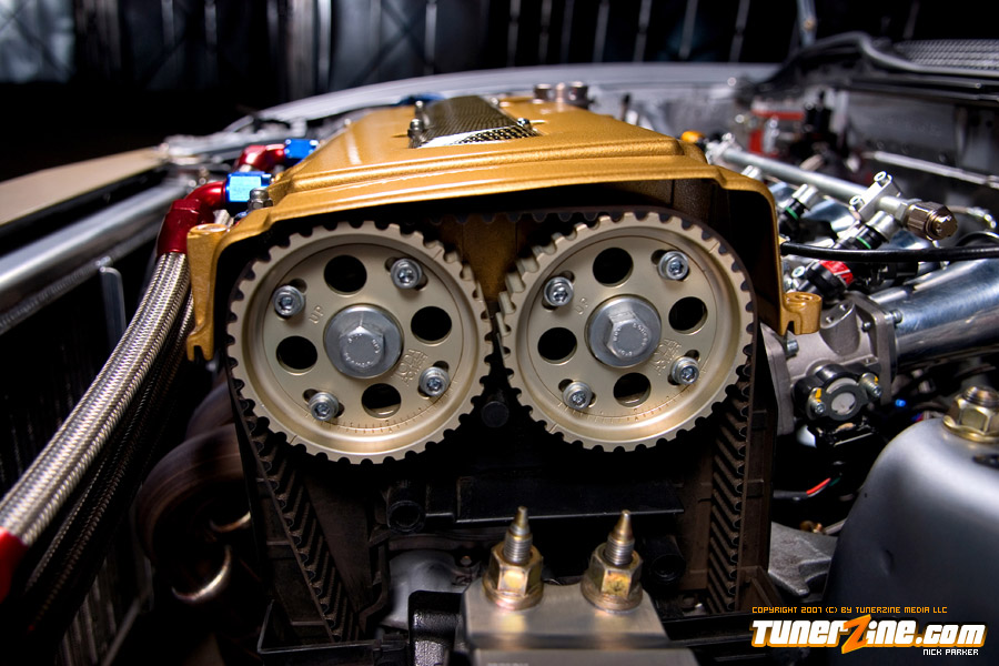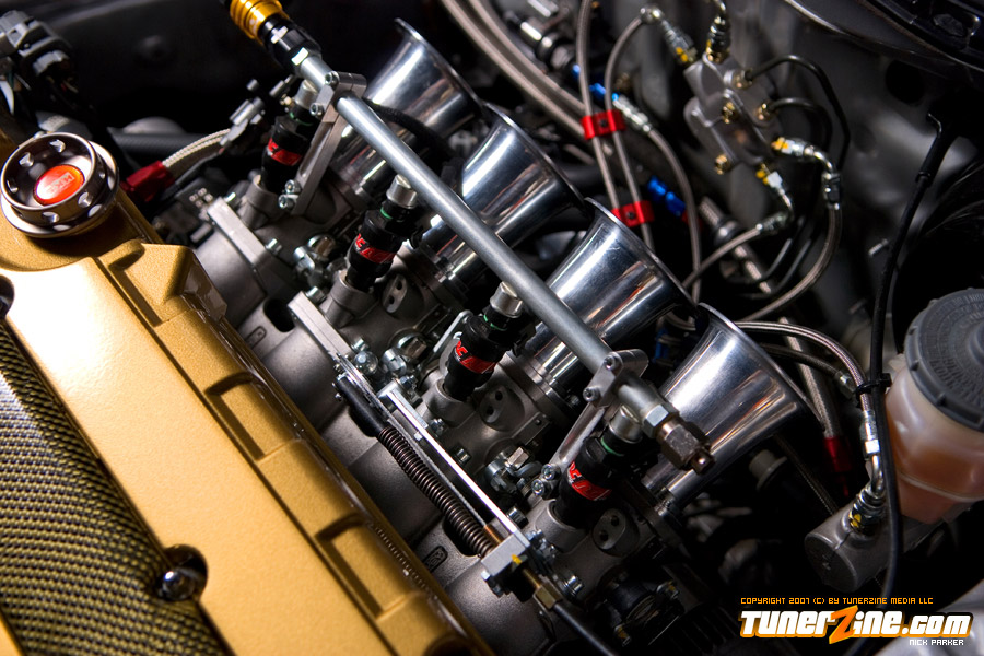 Onto the head, the GS-R head was completely revamped with Toda goods. Toda’s C2 camshafts along with their cam gears and timing belt attribute to the massive high end horsepower gains. The head received headwork from Portflow, along with their titanium retainers, inner and outer valve springs and bronze valve guides. The GS-R also utilizes REV’s stainless steel flat face valves. Once the motor was reassembled, a set of Jenvey / Hayward 48mm Taper Individual Throttle Bodies were installed. Additional fuel was pumped into this motor through 440cc injectors from RC and a Walbro 255lph fuel pump.