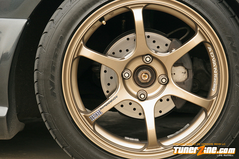 Keeping the exterior rather subtle, this EG has received an overhaul in the body modifications territory by shaving its door handles and moldings. The exterior of the car was then sprayed with a custom gunmetal paint by Bodyworks. Accenting the front end of the vehicle is a Seibon front lip while Xenon side skirts and a Buddy Club rear bumper make strange bedfellows in completing the aesthetics of the car. An OEM style carbon fiber hood and Seibon carbon hatch free up some weight as the metal counterparts were tossed aside. Completing the exterior modifications is a beautiful set of 16×7-inch Advan Racing RGII wheels in bronze, wrapped with Nitto’s Neo Gen tire.