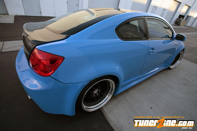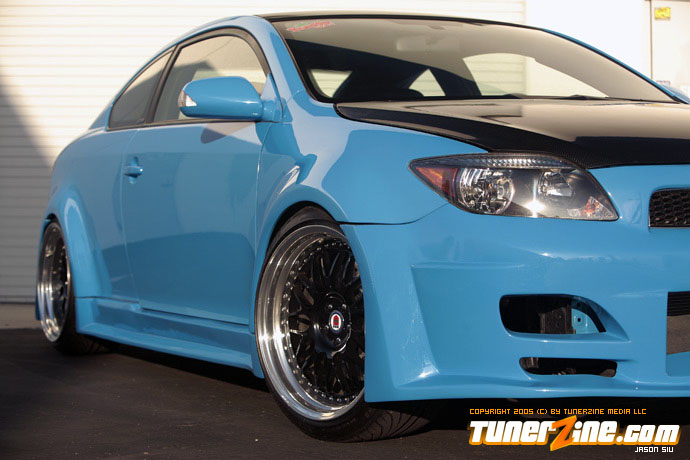 Mr Tjin was nice enough to let us get some of the first feature footage of the car since the new face lift. Gone was the bright red paint and riveted widebody kit, replaced with none other than BASF’s Sky Blue shade. The body kit was also molded to the rest of the chassis, all done by David Lightner from Dlight Customs. By now the vast majority of you have seen this tC grace the cover of HCI Magazine, but for those that haven’t – it’s ok, we understand – this is one Tjin edition vehicle that I can stand looking at for more than three minutes. You see, I had the distinct pleasure of growing up in the scene with Neil Tjin. One of his first projects was this ridiculously built yellow Acura TL. To my surprise the guy still daily drives the car, except it has Nissan wheels now. Which by the way is odd, but he also owns a four door Nissan Skyline, so I guess we’ll overlook the minor details on the now defunct TL.