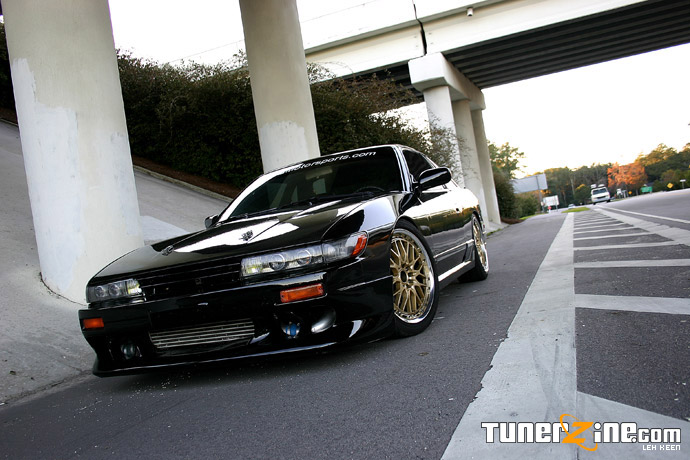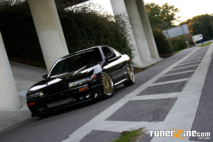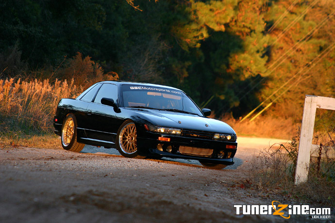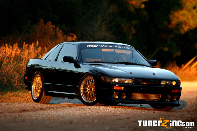 As drifting gains popularity and sweeps across America, more and more tuners are purchasing cheap 240sx’s and prepping them out for some sideways action. As a driver in the Porsche GT3 cup in Grand-Am Rolex, Leh Keen of GSC Motorsports is always out looking for new challenges. Running across this S13 coupe, Keen jumped on it and got himself in the driver seat ready to drift. Glossed in a jet black finish on Volk Racing Gold GT-U’s, this S13 Silvia converted coupe is as clean as it gets with plenty of power to kick the rear out.