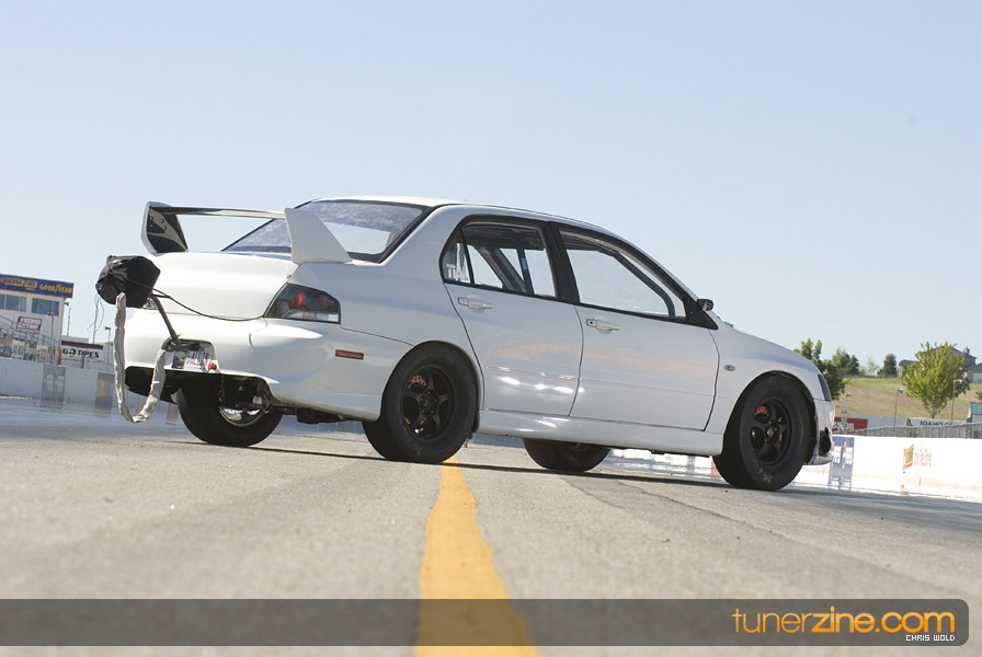 Since Dan focused purely on performance on this build, his suspension setup is naturally geared towards performance as well in getting him down the quarter mile. A set of coilovers from Stance delivers the performance he needs from their GR+3way model. Wilwood front and brake calipers along with rotors and pads are used to its maximum as the EVO slows down from its 9 second quarter mile times. Tackling the track is a set of lightweight Motegi Racing Tracklite wheels in a 15×7.5-inch size, wrapped with Mickey Thompson ET 15×8.5 drag tires.
