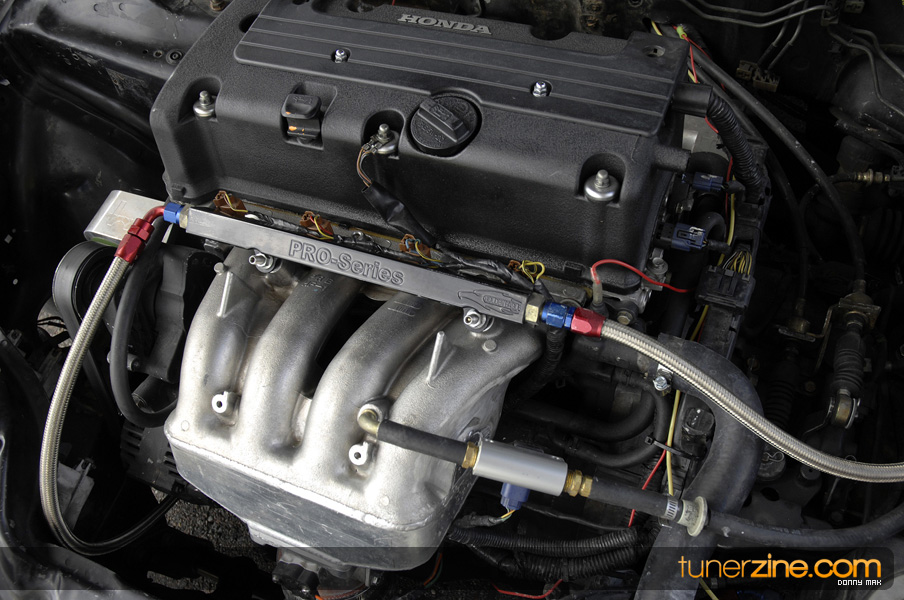 Earlier this week we did a feature on Stage 6’s Turbo Honda Civic EG drag racer entry and this time around we take a look at their all motor K-series car. On the outside, the car is more subtle in appearance since it’s not sporting a three-piece front end, but the rest of the style remains consistent with its “twin” Civic. Pushing out 263 whp and 210 wtq, the K24A2 boasts a stock block equipped with Eibach valve springs and retainers. Power is pushed to the max thanks to Brian Crower stage 2 camshafts. Bolt-ons include a DTR small-tube header, Stage 6 Motorsports intake manifold and intake box. Some clever custom fabrication was done that really shows off what Stage 6 can do.