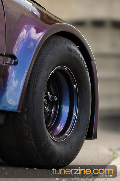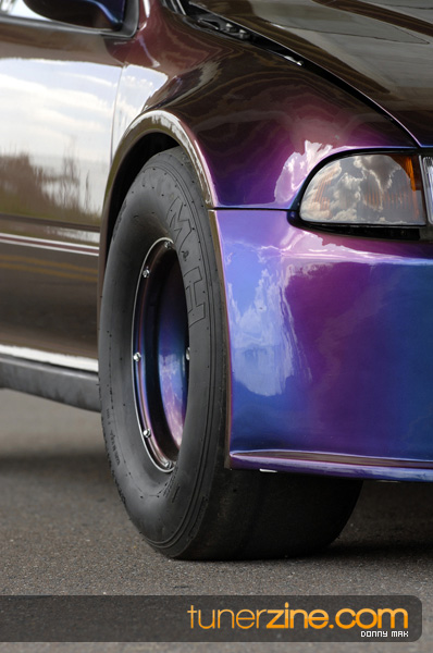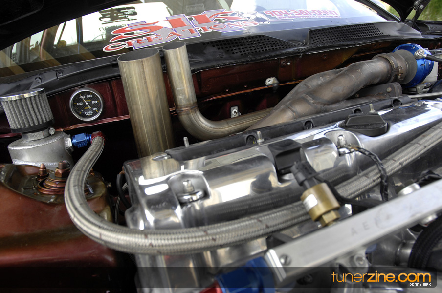 In our continued support for the NSCRA, Tunerzine.com has started reaching out to NSCRA’s racers to spotlight their beautiful machines that attack the track. We were able to meet up with SIK Creations and Stage 6 with their two Civic EG drag cars. One of them is turbocharged and the other is naturally aspirated. In our two part feature of these “twins”, we’ll start off first with SIK Creations/Stage 6’s Turbo car which can be seen at NSCRA events campaigning in the Phantom Grip Street Outlaw 4-Cylinder class. The unmistakable exterior of this EG sports a Jojo Callos three-piece widebody front end which allows for the 26-inch M&H slicks to fit comfortably. A custom blue/purple based chameleon paint job makes it stand out from the crowd of EGs in the class with the wheels carrying the same paint shade. EK side skirts and a Spoon Sports style rear spoiler round off the exterior mods. Under the hood, this turbo EG pumps out 820 hp and 520 tq @ 38 psi of boost. Stage 6 fabricated the intake and exhaust manifold, downpipe, radiator and intercooler along with the piping. The motor has been sleeved thanks to Golden Eagle and rebuilt using CP 9.0:1 compression pistons and BME aluminum rods. The head has been revamped with Ferrea’s high class valvetrain. IPS KT1 camshafts and a Precision PT-74 turbo is the central core for the 800+ hp being pumped through this system.