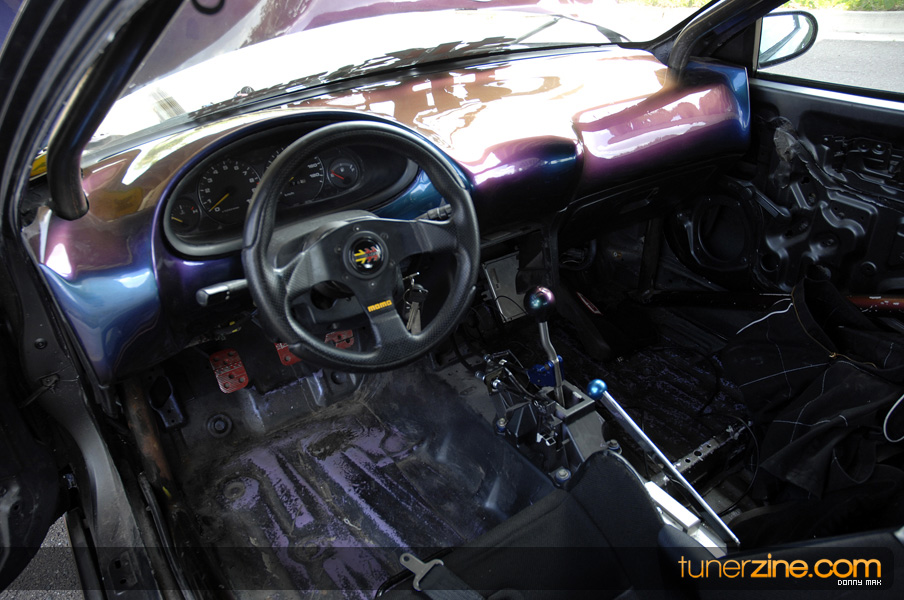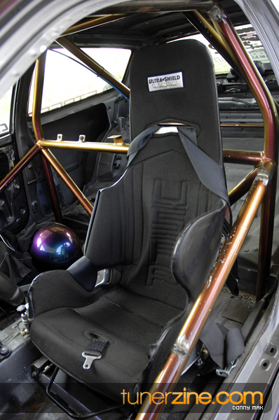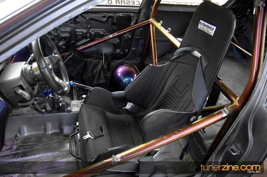 Suspension wise, this EG is powered with Omni coilovers in the front and Ken’s Custom Chassis’ solid axle in the rear. A full 10-point roll cage was welded in for safety and to strengthen the chassis while an Ultra Shield race seat with Simpson harness keeps things lightweight and safe. The chameleon theme continues with the interior being repainted with a custom orange-based shade. Make sure to head out to the July 5th NSCRA event at Palm Beach International Raceway to spot this bad ass EG in action.