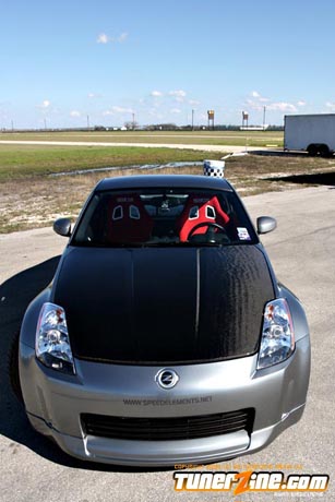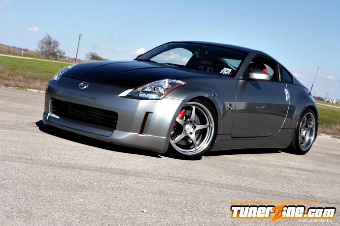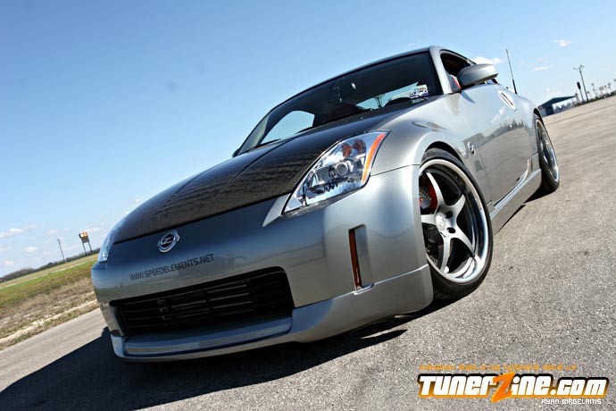 As we enter the 2005 season, one thing’s for sure: Hondas are no longer going to be dominating the scene. The 350Z from Nissan has slowly become a crowd favorite with its VQ-powered RWD power train and is just one of the newer vehicles taking its form in the sport compact scene. Sam Patel and Speed Elements in San Antonio, Texas picked up one of these new bad boys and started their own method of madness on it. A little more horsepower, a little more stylish shape on the body, and a wicked suspension setup on a beautiful set of wheels and tires, Patel equipped this 350Z with nothing but top of the line modifications.