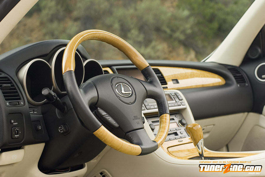 The restyling of the Lexus SC430 brought on many changes from its previous generation. Not only was the wheel base shortened and the convertible hard top was added, the body changes made it more fitting for an aggressive set of wheels and tires. In Japan, the company Wald has developed a reputation like none other for classy styling on Japanese luxury vehicles. Jonari Corp. has begun the importing of Wald products, and Winstead went the route of beautifying his SC430 with Wald styling. The front spoiler, side skirts and rear lip was match painted and installed professionally, giving the already curvaceous SC430 even more rounded lines. The front and side skirts easily flow into the rear of the car, where a Wald lip spoiler sits atop the smooth trunk, completing the package. While viewing the rear of the car, it’s hard to notice how attractive and fitting the Blitz exhaust system is to the rest of the chassis. Shining brilliantly in a high polished finish, the rounded tips flow with the natural body lines in a curved fashion.