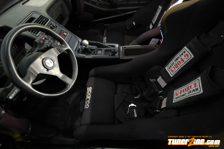 Powering the RWD wonder is the Honda C32B, receiving Honda’s latest revision of the NSX ECU. Taitec headers and Comptech test pipes lead out to a Kawagen exhaust system, modified to suit John’s needs. The Honda A61 6-speed transmission has been beefed up with an Exedy clutch and re-spec’ed set of axles.