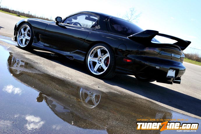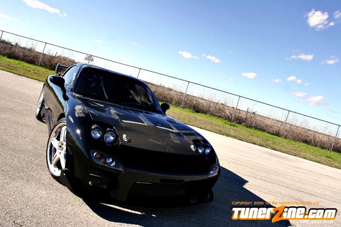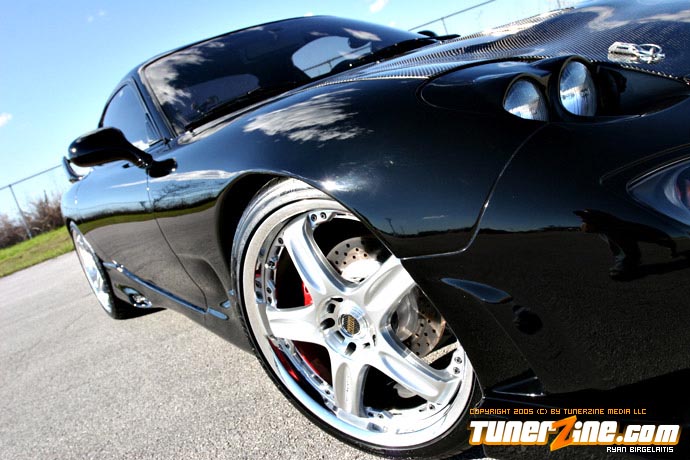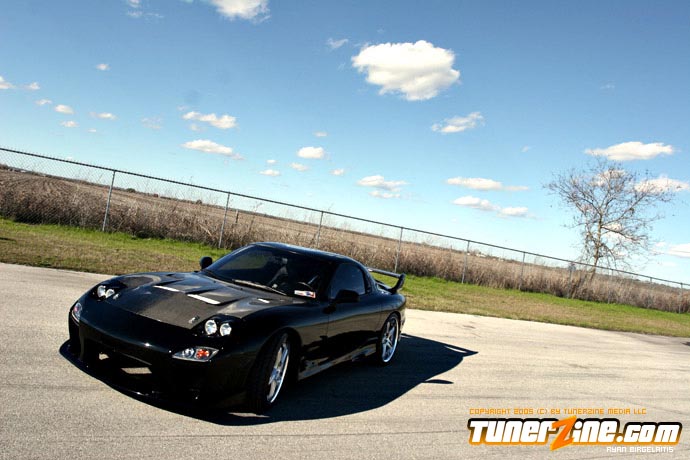 Rotary and turbocharged power is what the Mazda RX-7 is all about. Tony Ha of San Antonio Texas enjoyed both of these things on the RX-7, but decided it was time to take matters into his own hands. The result is one of the absolute sickest and most complete RX-7s out there. Sporting a dark and menacing black shade, I can easily see kids mistaking this car for the Batmobile.