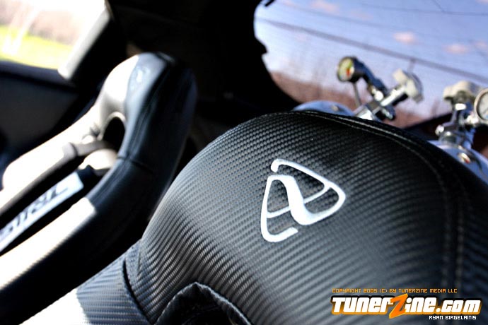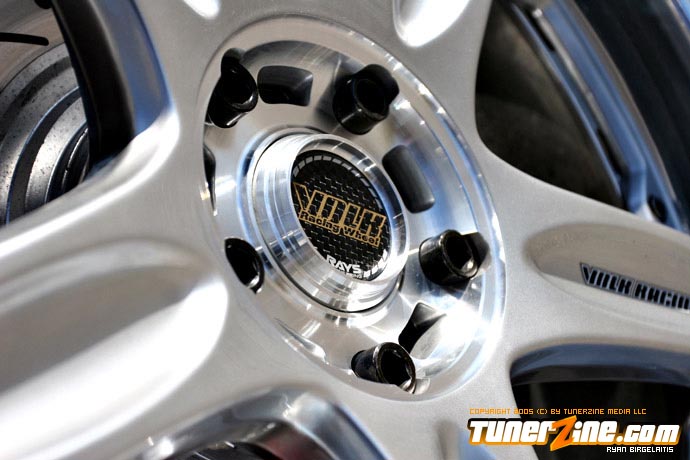 Slamming the car to the ground is a set of TEIN RA coilovers that offer both dampening and height adjustability. Suspension Techniques front and rear sway bars were bolted onto the chassis as well. Up front is a GReddy front strut tower bar and in the rear is a JIC rear carbon fiber unit. The car is completely set off thanks to a set of 19×8.5 and 19×9.5 Volk Racing GT-C wheels wrapped with Nitto NT555 tires. The braking has received an extensive makeover as well. In the front and the rear are sets of Brembo cross-drilled and vented rotors. Four-piston calipers in the front and two-piston calipers in the rear help bring the 19s to a halting stop. Axxis metal brake pads along with Goodridge stainless steel brake lines finish off the package.